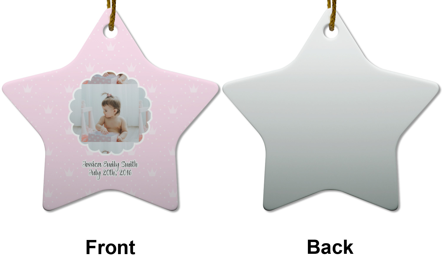 Have a happy holiday and share the joy of Christmas with your loved ones by hanging up personalized ceramic ornaments! Ornaments add a touch of who you are and the things you love onto the Christmas tree! Create custom ornaments for the kids and have them hang up their own star with their name, or pay remembrance this holiday to missed loved ones with our ceramic heart ornament. Browse many of our unique designs and customize them the way you'd like! From monograms, logos, and patterns, we have it all! You can even upload a photo of your family for us to print onto the ornament! The possibilities are endless!