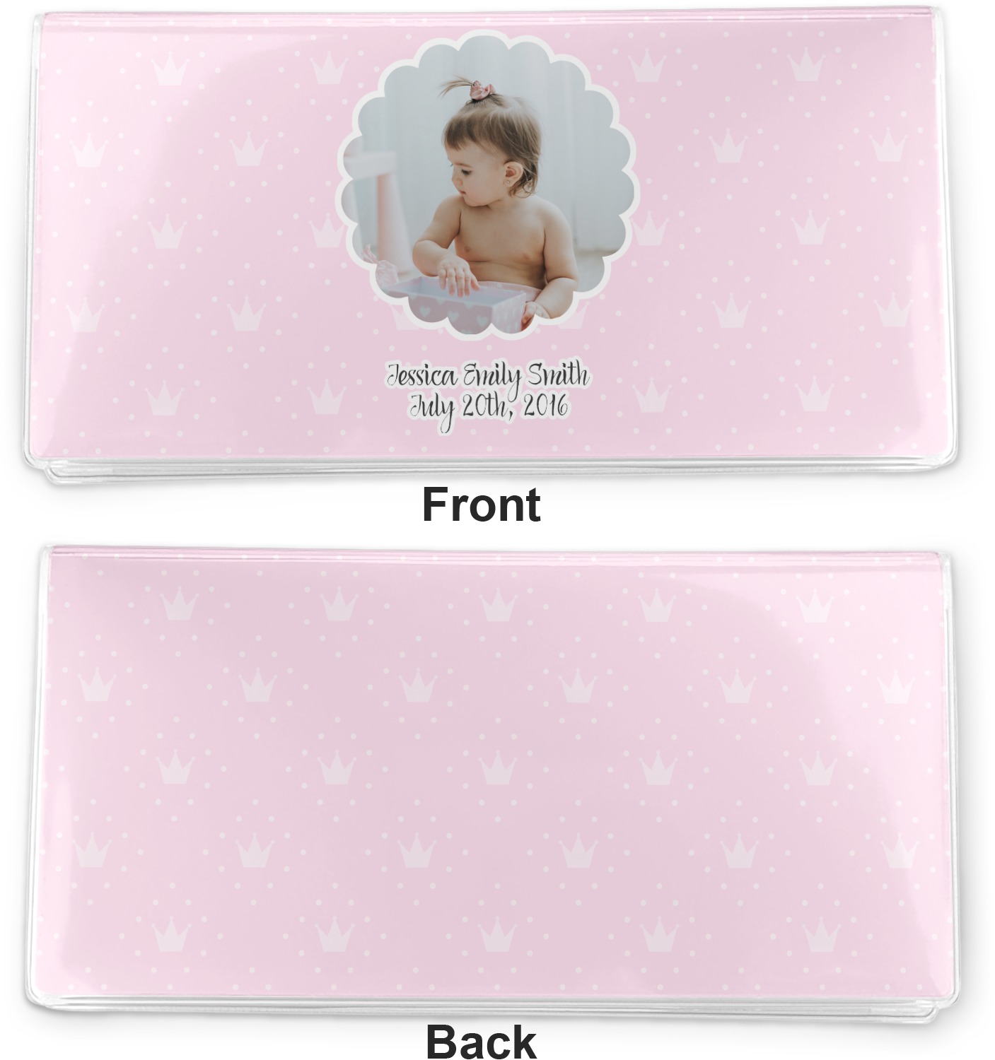 This checkbook cover is a similar shape and size to what the bank sends, but is a million times better. It is made of clear vinyl to give your cover a sturdier and more durable feeling. This checkbook cover has two large slots to keep your checks and your transaction register. It comes with all the necessary tabs to put between your checks as well. It easily folds closed so that you can see your design on the front and the back. It is the perfect way to stay slim and stylish at the same time.