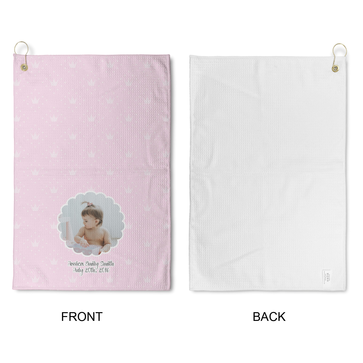 Personalize your design for your towel in our design studio then we will custom print and make it for you. The heavy duty brass grommet and hook are perfect for hanging anywhere you need it to. The waffle weave material is a durable microfiber material that will absorb up to 7 times its weight.