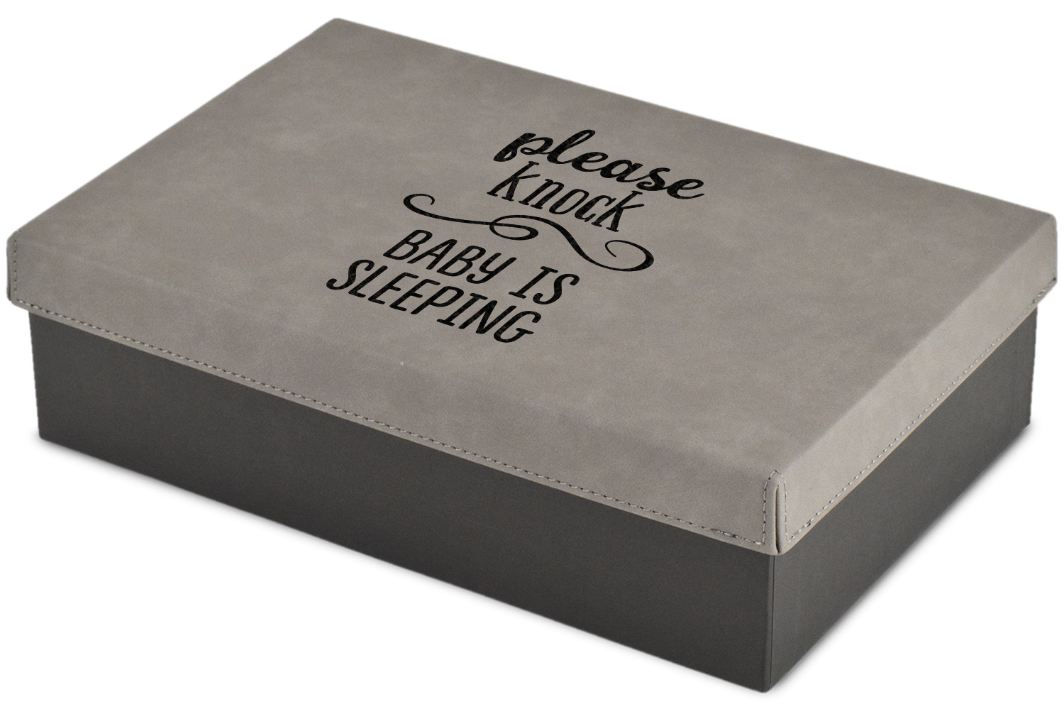 These gift boxes are available in 3 different sizes to accommodate various sized gifts. Available in gray as a neutral color for any occasion as well as to showcase your design boldly. Engraved with a laser this high quality paper board and faux leather gift box is unique and makes any gift stand out.