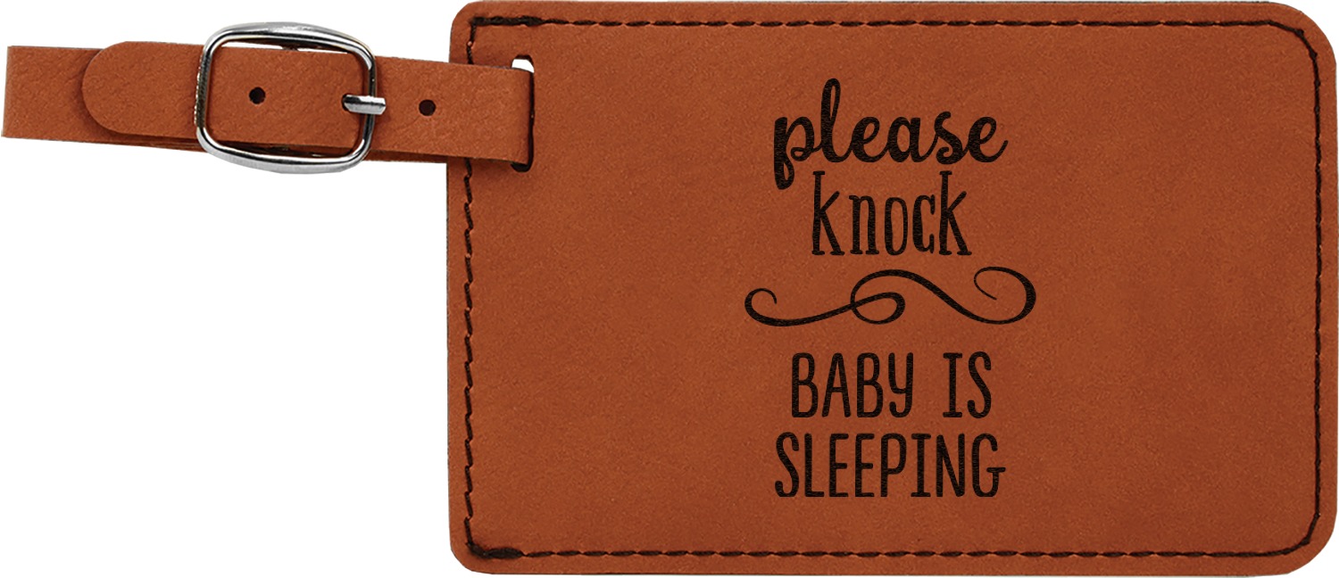 This luggage tag will surely be able to get you started in having all the right tools for traveling. It is made of a beautiful leatherette material that is a nice shade of cognac brown. The front of the tag is where your design goes. The sturdy black stitching gives your design an extra pop and gives the tag extra durability. The back of the tag has a clear vinyl window where you can slip in your address card. The tag comes with a great little buckle strap that you can easily use to clip to your suitcase. The tag itself measures at approximately 5.5"W x 4.25"H.