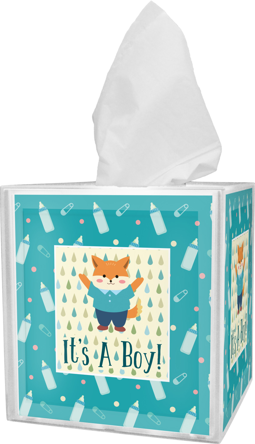 These tissue holders are built from durable acrylic and display your unique personalization on fine-quality vinyl inserts placed within the four sides and top. The box features two pieces, allowing you to easily switch out tissue boxes. On the sides, you'll find ridges that ensure the top and base fit securely in place. The bottom of these tissue box holders has four, rubber, non-slip pads to prevent the box from scuffing any surface you decide to display it on. Each box can fit a standard 5-by-5-inch box of tissues.