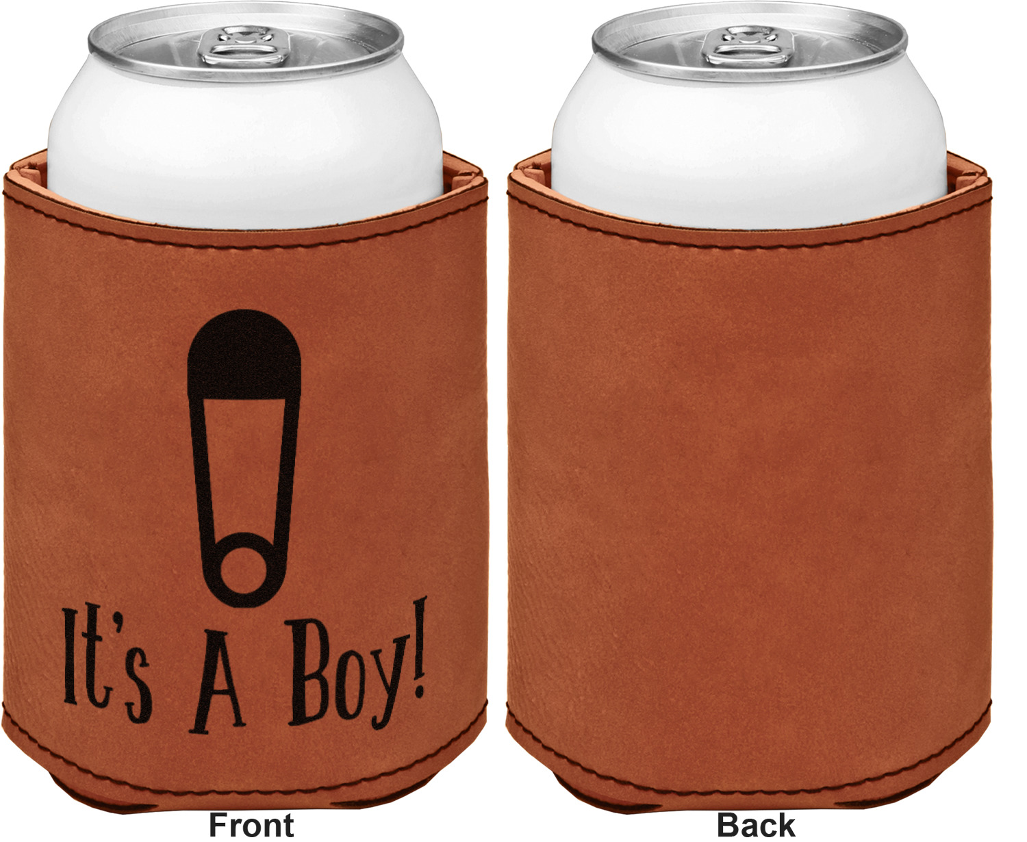 This can sleeve is made from a cognac-brown leatherette and stitched with a sturdy, black thread. A slim padding lines the inside of your can sleeve to allow for a better fit once your drink is inserted. The sleeve itself measures at 4 by 4.5 inches, allowing this custom can sleeve to accommodate most canned drinks. Your personalized design can be engraved on the front and back, or solely the front. When laser-engraved, your design appears as a black coloration which contrasts the leatherette nicely.