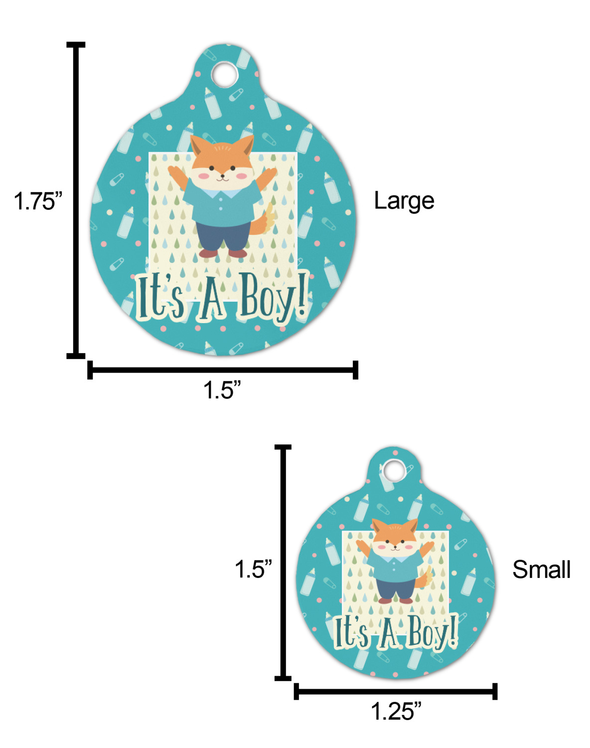 The sturdy, rounded, aluminum tags are available in 2 sizes.