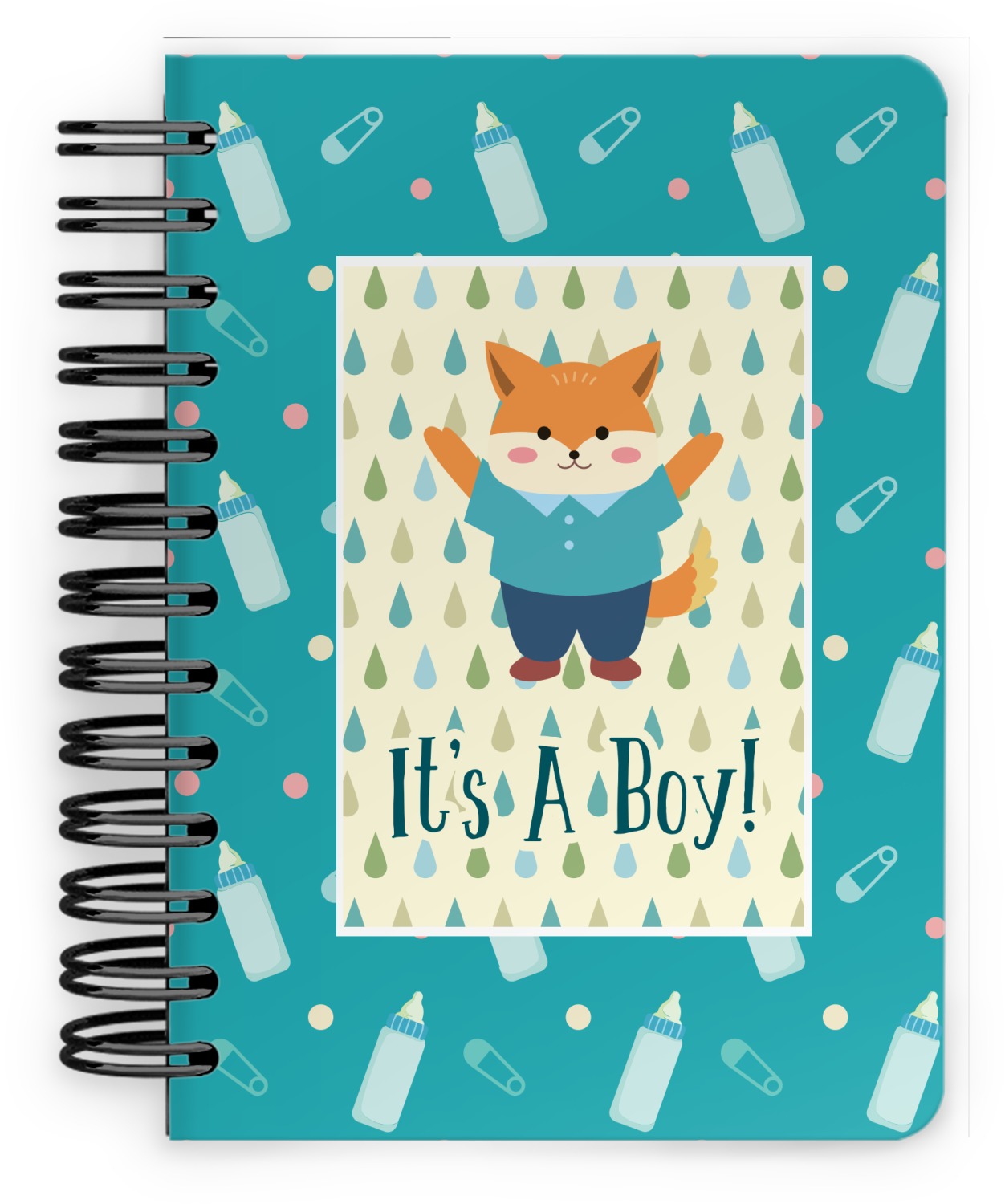 This spiral notebook includes 75 sheets of thick, ruled paper. The front and back of this custom notebook is made of a robust, laminate, plastic covering. We print your personalization on these two panels, underneath a glossy finish, which emphasizes the colors of your design. The two panels and the sheets of paper are held together by a sturdy, black coil. The paper within your bound notebook is perforated for easy, clean tearing.