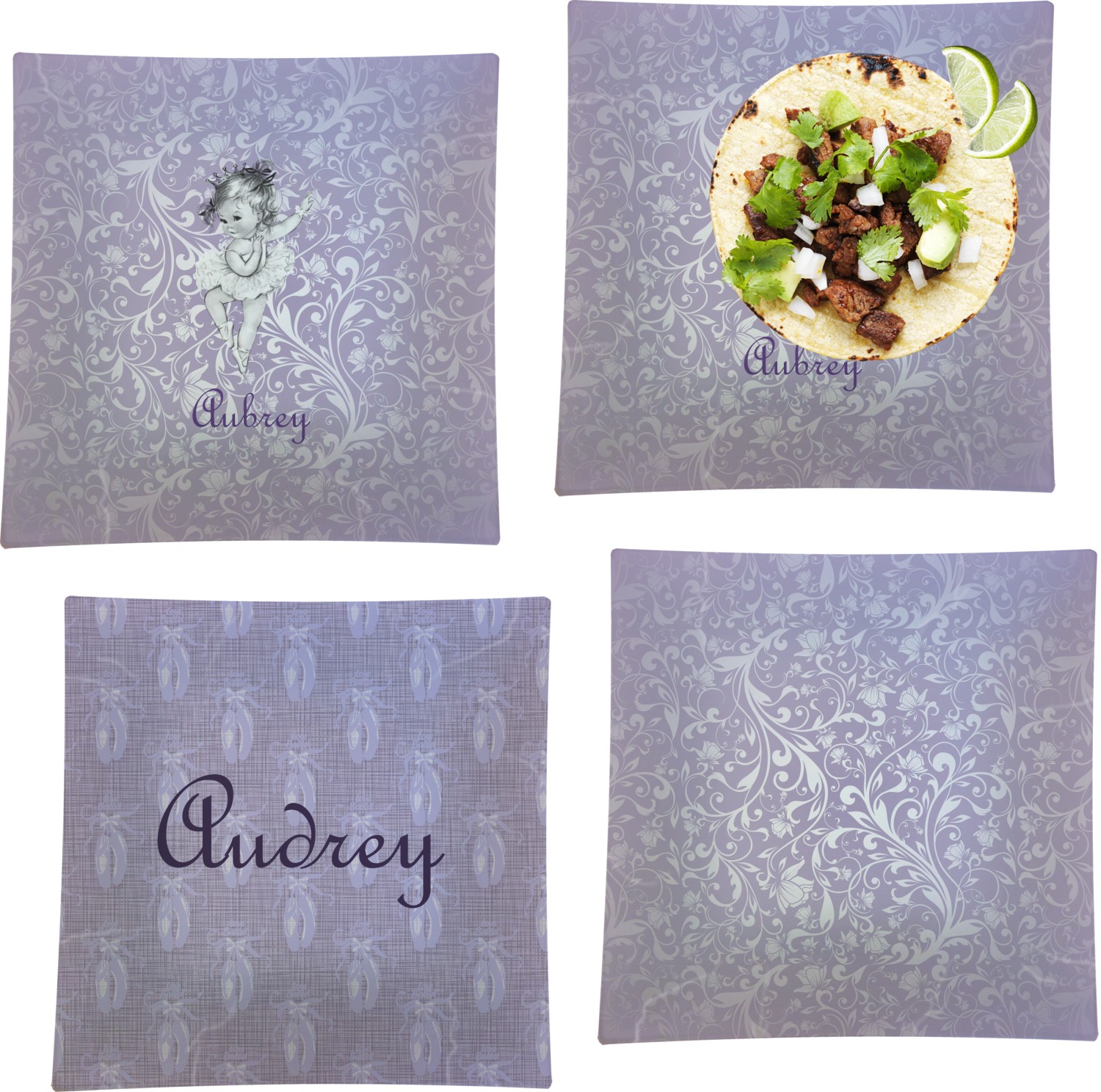 Our ballerina design is simply stunning and is perfect for the baby or little girl that is going to grow up to be a ballerina. We have create yet another layered design. The background is a beautiful, elegant floral pattern that we have done purple/lavender tone on tone color. Our second background is a subtle radial fill to highlight our beautiful ballerina. In the foreground, we have our beautiful vintage ballerina. For personalization, we added her name in a simple upright script font.