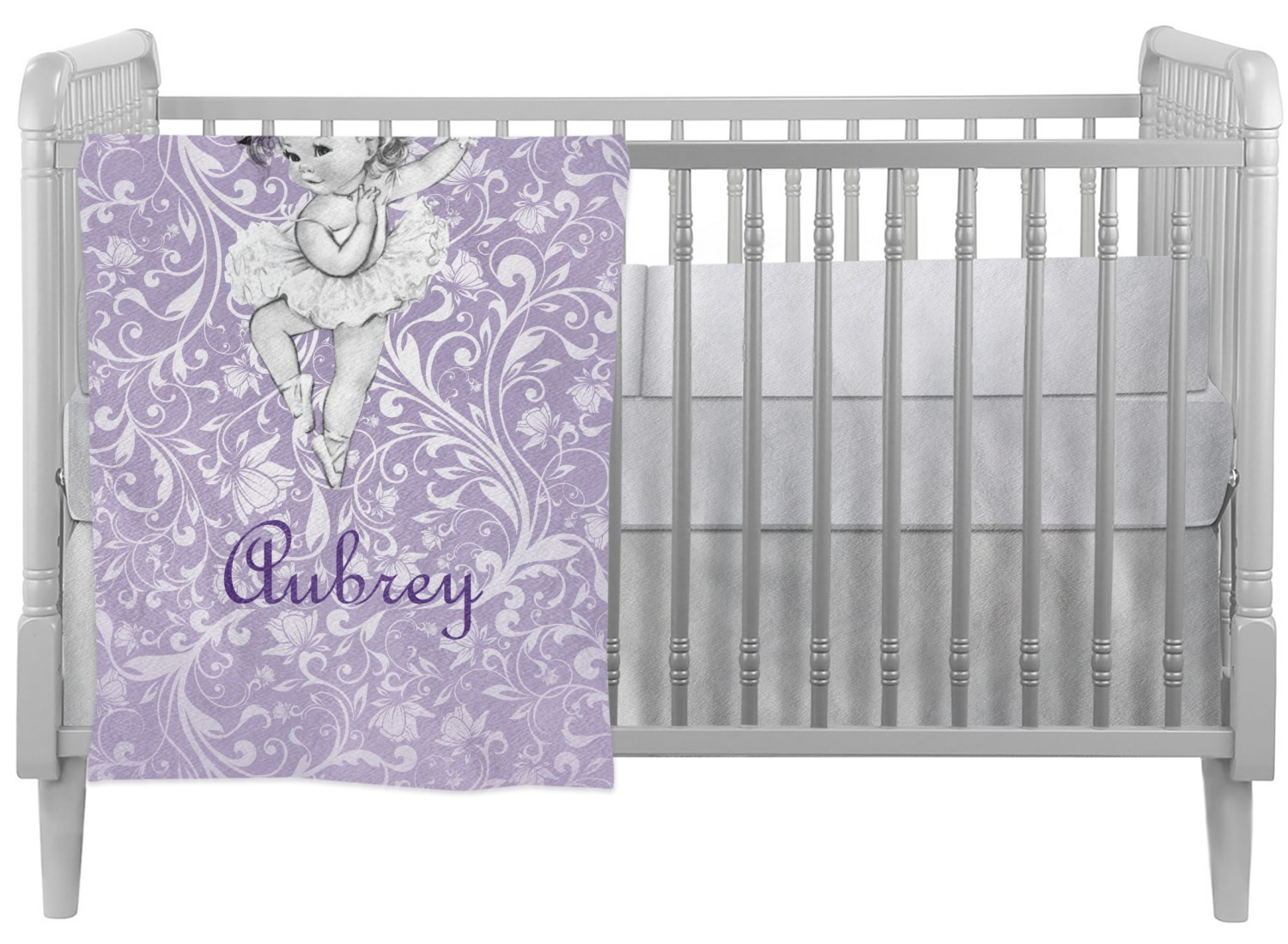 Our ballerina design is simply stunning and is perfect for the baby or little girl that is going to grow up to be a ballerina. We have create yet another layered design. The background is a beautiful, elegant floral pattern that we have done purple/lavender tone on tone color. Our second background is a subtle radial fill to highlight our beautiful ballerina. In the foreground, we have our beautiful vintage ballerina. For personalization, we added her name in a simple upright script font.