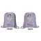 Our drawstring backpacks are available in 3 sizes. Small is approx 15in tall by 13in wide. Medium is approximately 18in tall by 17in wide. Large is 23in tall and 19in wide.