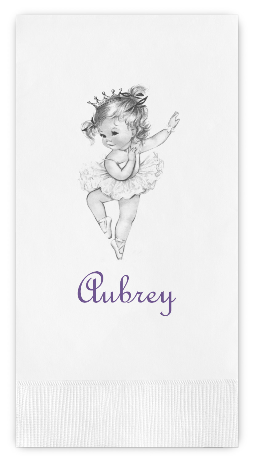 Our ballerina design is simply stunning and is perfect for the baby or little girl that is going to grow up to be a ballerina. We have create yet another layered design. The background is a beautiful, elegant floral pattern that we have done purple/lavender tone on tone color. Our second background is a subtle radial fill to highlight our beautiful ballerina. In the foreground, we have our beautiful vintage ballerina. For personalization, we added her name in a simple upright script font.