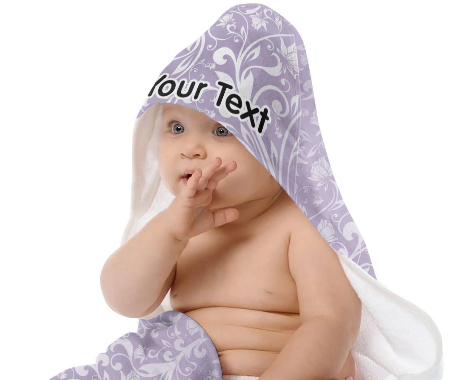 This baby towel is made with a plush microfiber velour and cotton terry. and thus will be soft and gentle against your newborn's skin, but also, very absorbent. Your customization is printed across the front & the hood, while the inside is a classy white.