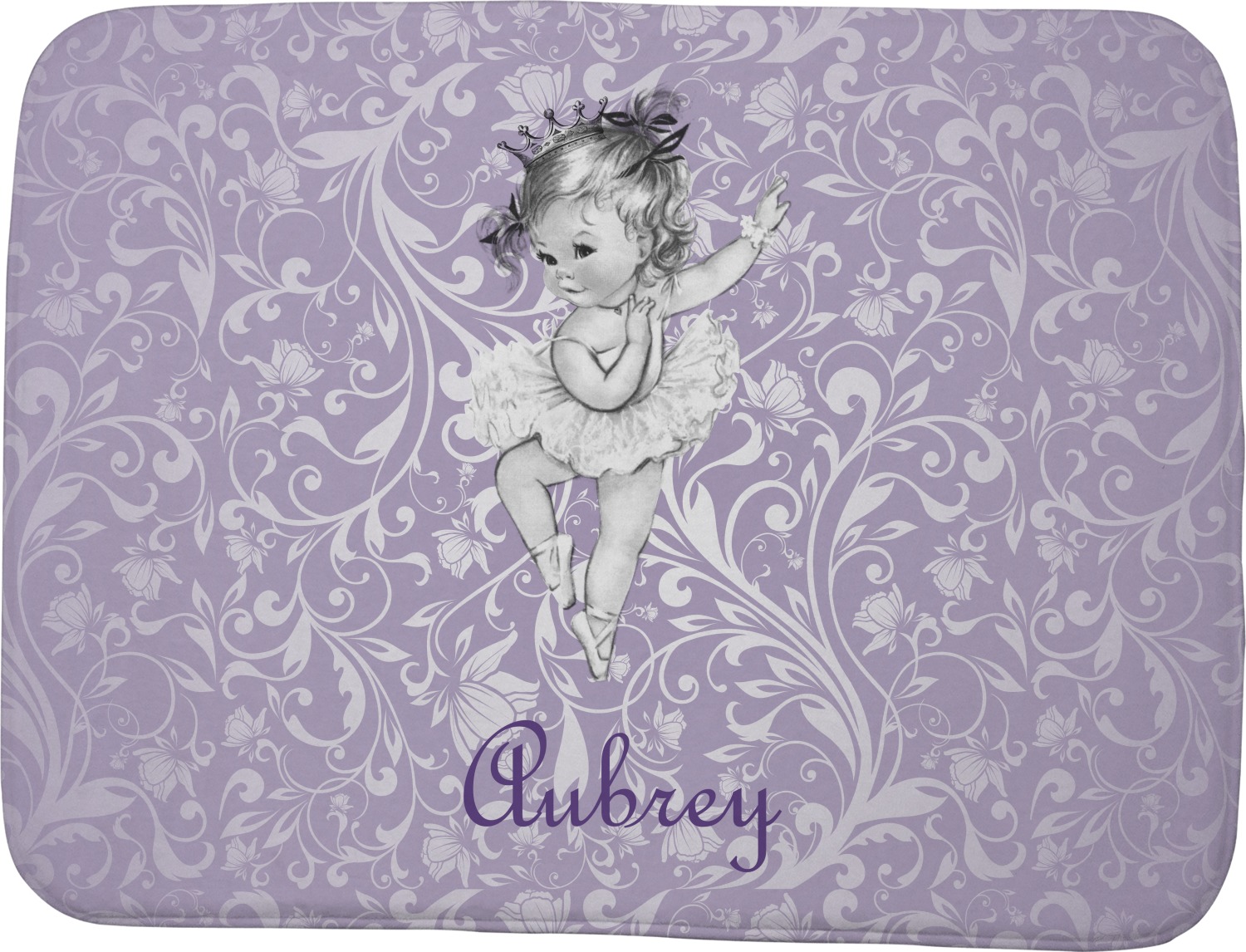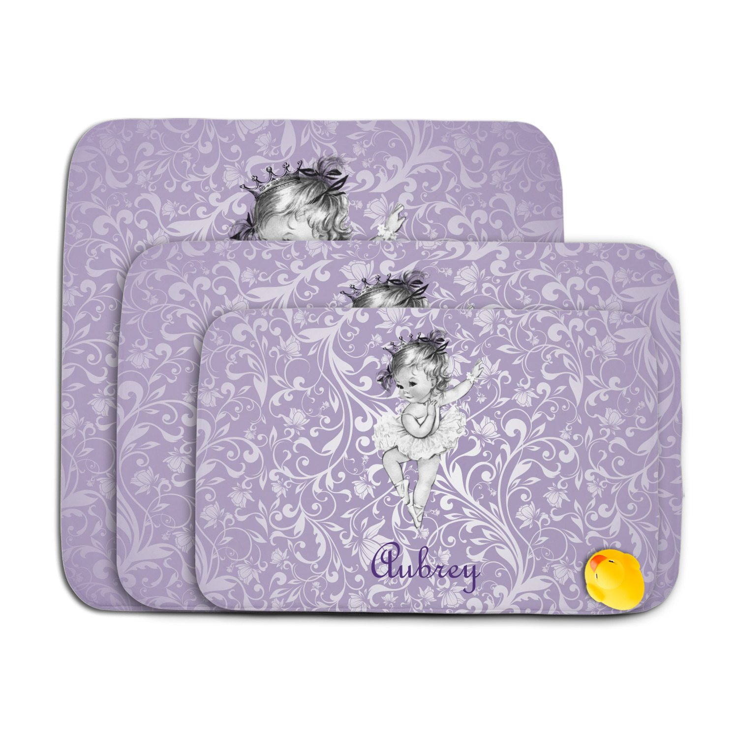Our ballerina design is simply stunning and is perfect for the baby or little girl that is going to grow up to be a ballerina. We have create yet another layered design. The background is a beautiful, elegant floral pattern that we have done purple/lavender tone on tone color. Our second background is a subtle radial fill to highlight our beautiful ballerina. In the foreground, we have our beautiful vintage ballerina. For personalization, we added her name in a simple upright script font.