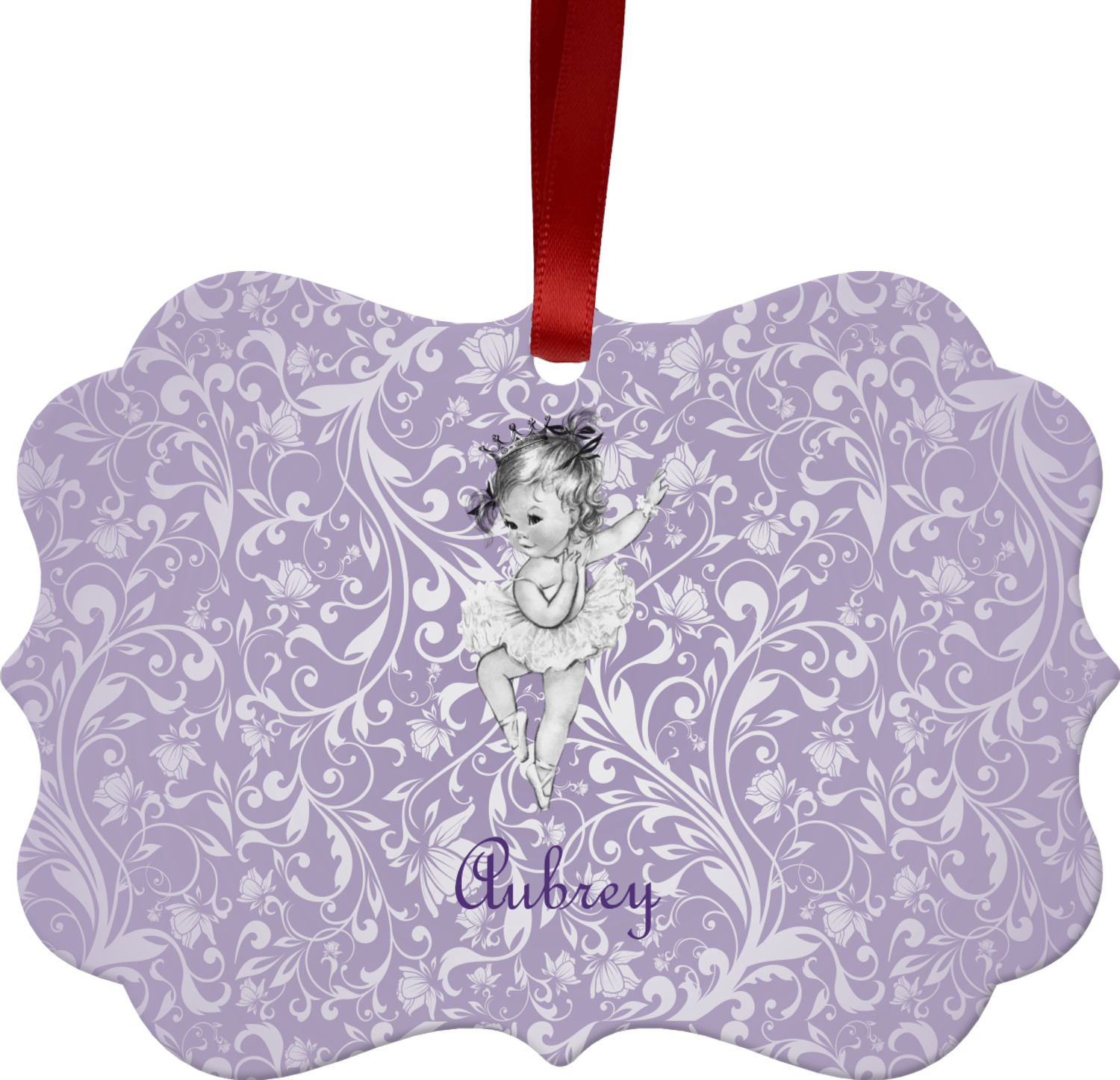 Our ballerina design is simply stunning and is perfect for the baby or little girl that is going to grow up to be a ballerina. We have create yet another layered design. The background is a beautiful, elegant floral pattern that we have done purple/lavender tone on tone color. Our second background is a subtle radial fill to highlight our beautiful ballerina. In the foreground, we have our beautiful vintage ballerina. For personalization, we added her name in a simple upright script font.