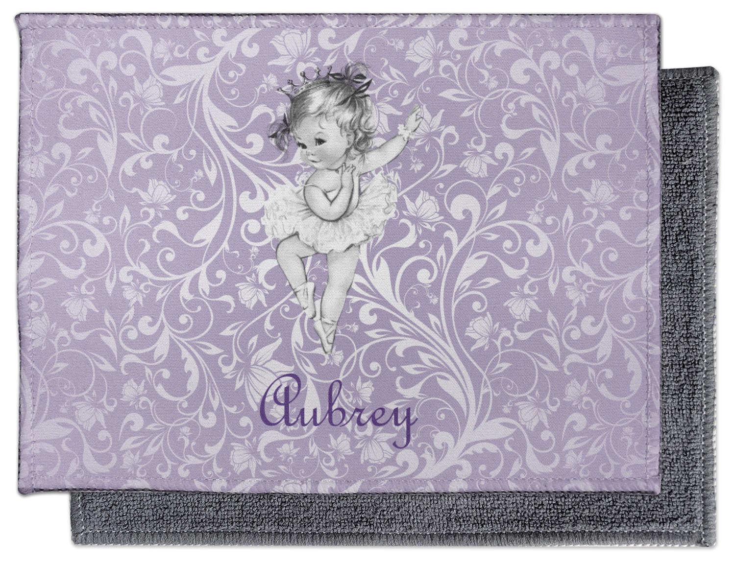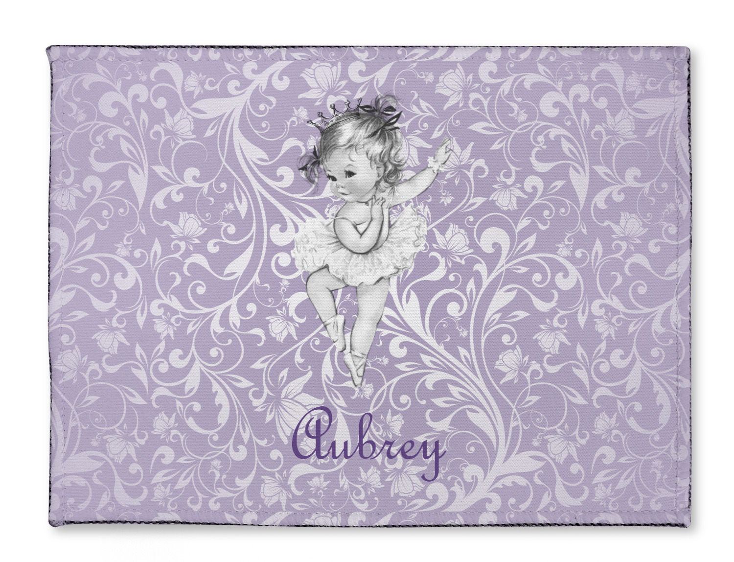 Our ballerina design is simply stunning and is perfect for the baby or little girl that is going to grow up to be a ballerina. We have create yet another layered design. The background is a beautiful, elegant floral pattern that we have done purple/lavender tone on tone color. Our second background is a subtle radial fill to highlight our beautiful ballerina. In the foreground, we have our beautiful vintage ballerina. For personalization, we added her name in a simple upright script font.