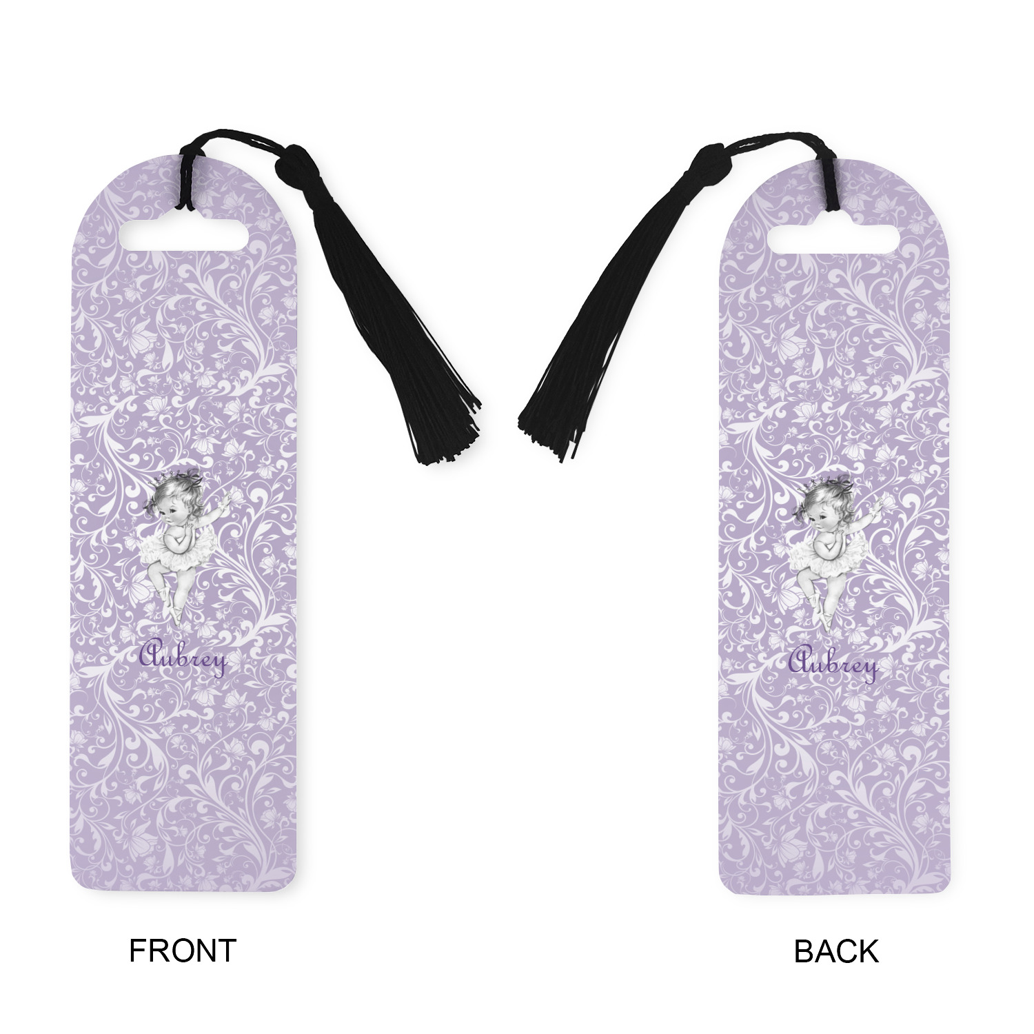 Made from a durable, flexible plastic, these bookmarks are printed with your custom design on them. With the tassel on them they make it easy to find your page in your book. These are a rectangular shape 7 1/4 inches tall with a rounded top and are approximately 2 1/4 inches wide.