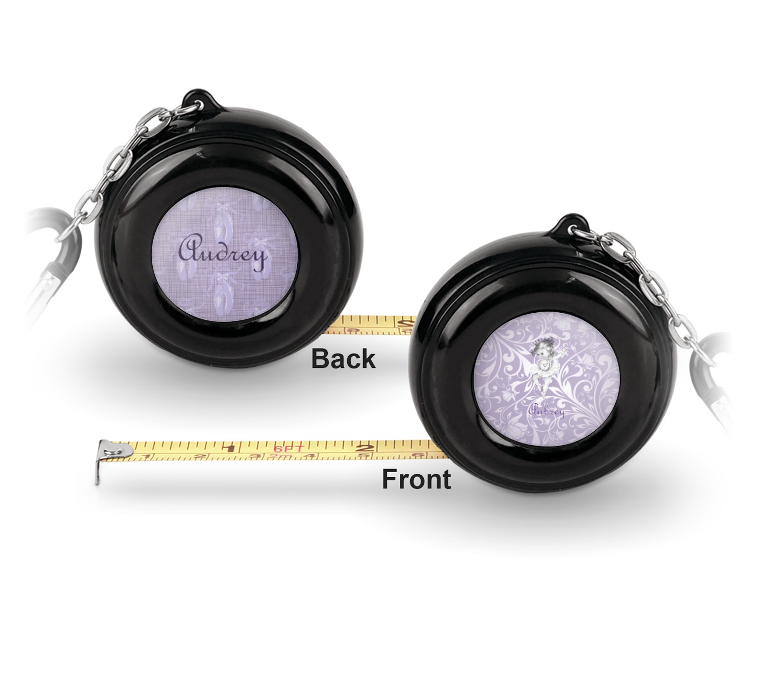 Now for personalizing! You get to personalize both sides of your tape measure. Have fun picking a cute pattern, font, or graphic! Make your personality shine through this fun tool.