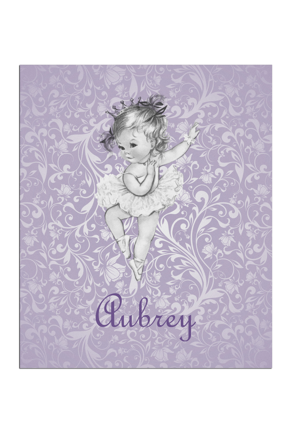 Our ballerina design is simply stunning and is perfect for the baby or little girl that is going to grow up to be a ballerina. We have create yet another layered design. The background is a beautiful, elegant floral pattern that we have done purple/lavender tone on tone color. Our second background is a subtle radial fill to highlight our beautiful ballerina. In the foreground, we have our beautiful vintage ballerina. For personalization, we added her name in a simple upright script font.