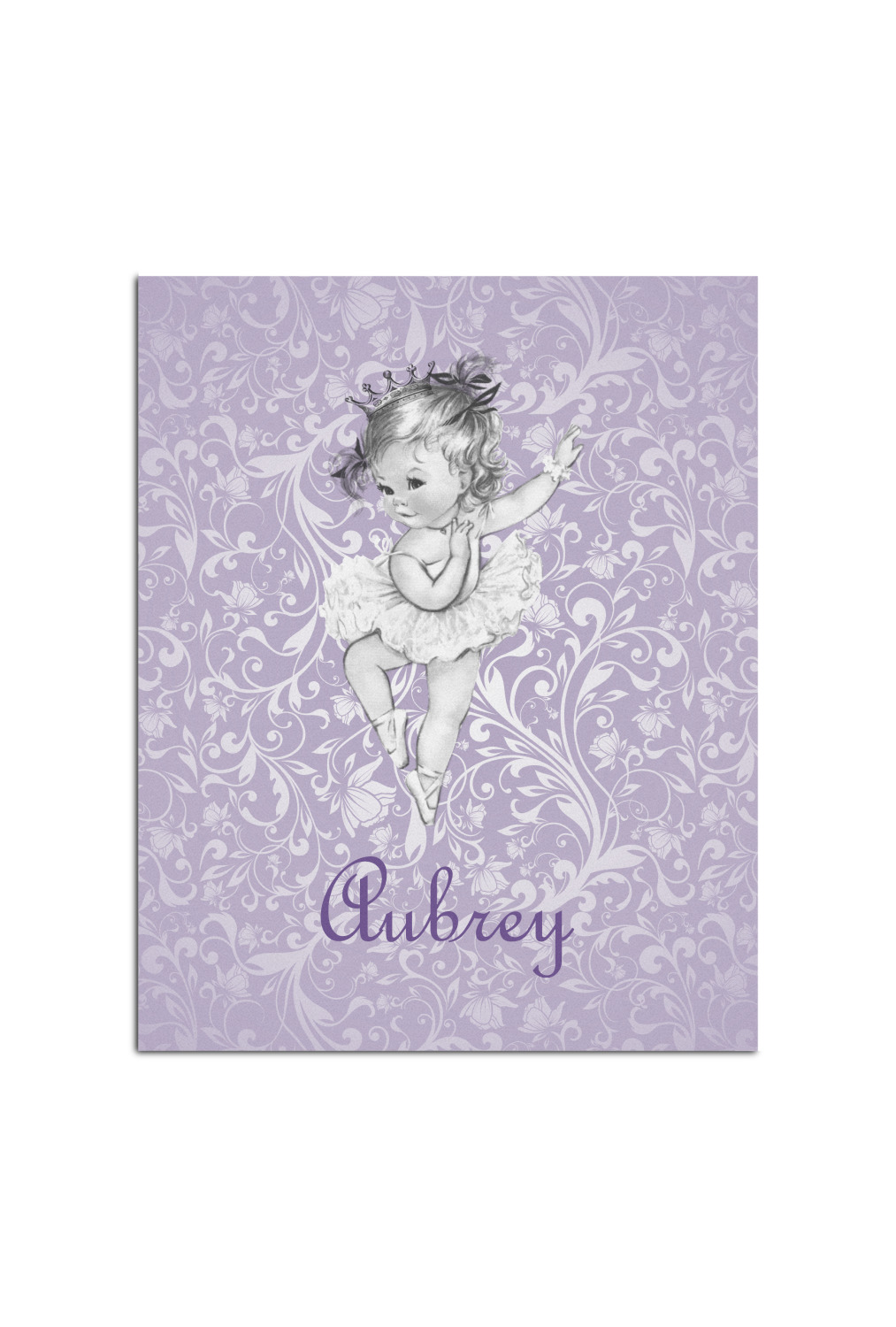 Our ballerina design is simply stunning and is perfect for the baby or little girl that is going to grow up to be a ballerina. We have create yet another layered design. The background is a beautiful, elegant floral pattern that we have done purple/lavender tone on tone color. Our second background is a subtle radial fill to highlight our beautiful ballerina. In the foreground, we have our beautiful vintage ballerina. For personalization, we added her name in a simple upright script font.
