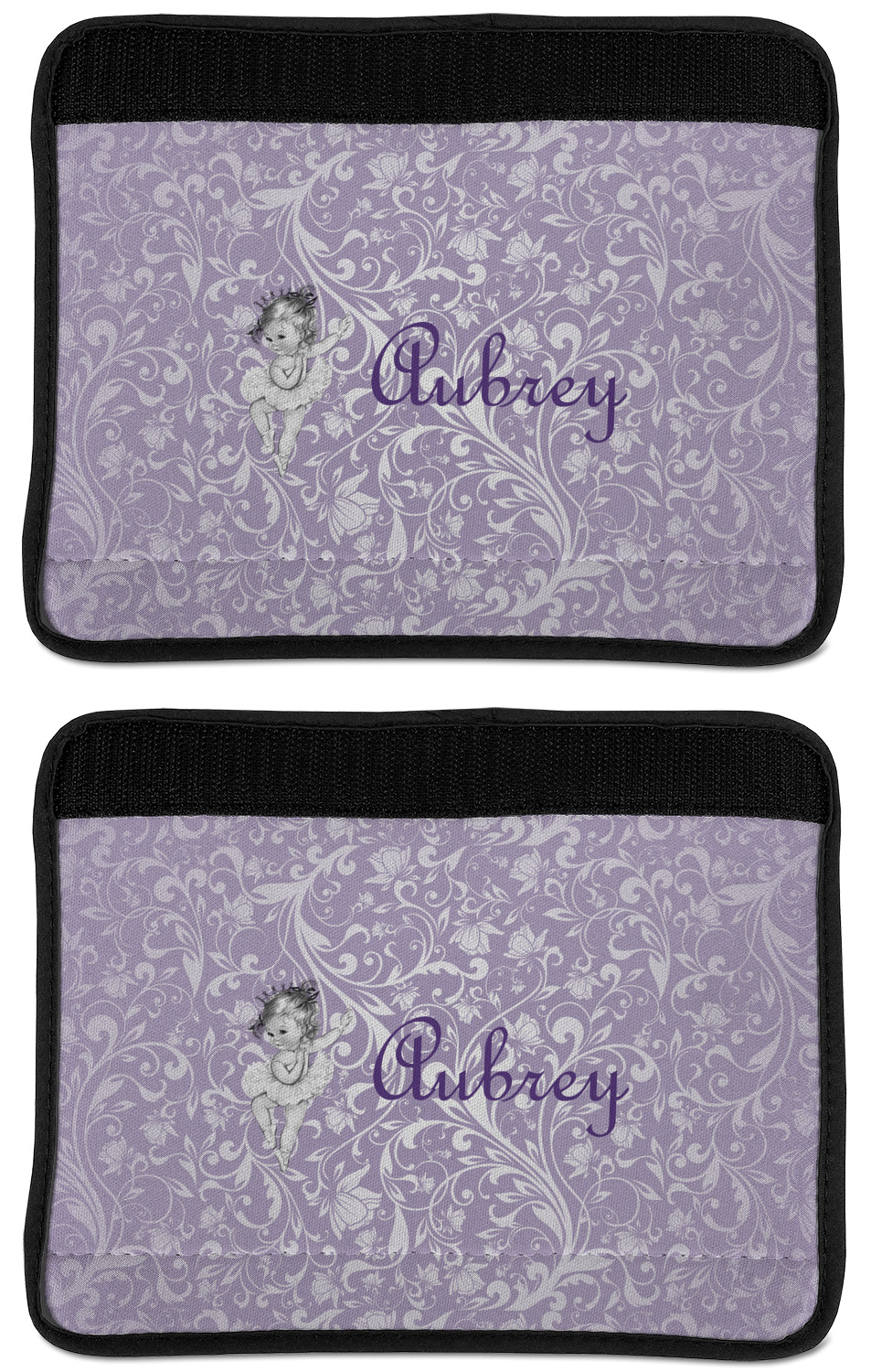 Made from neoprene, our seat belt strap covers wrap around the belt itself and have a Velcro tab for easy attachment and closure. The belt's edges are trimmed with a black polyester for a secure finish. Each cover is 9.5 by 7 inches when open and 9.5 by 2.5 inches when closed. We print your personalized design on the face of the seat belt pad.