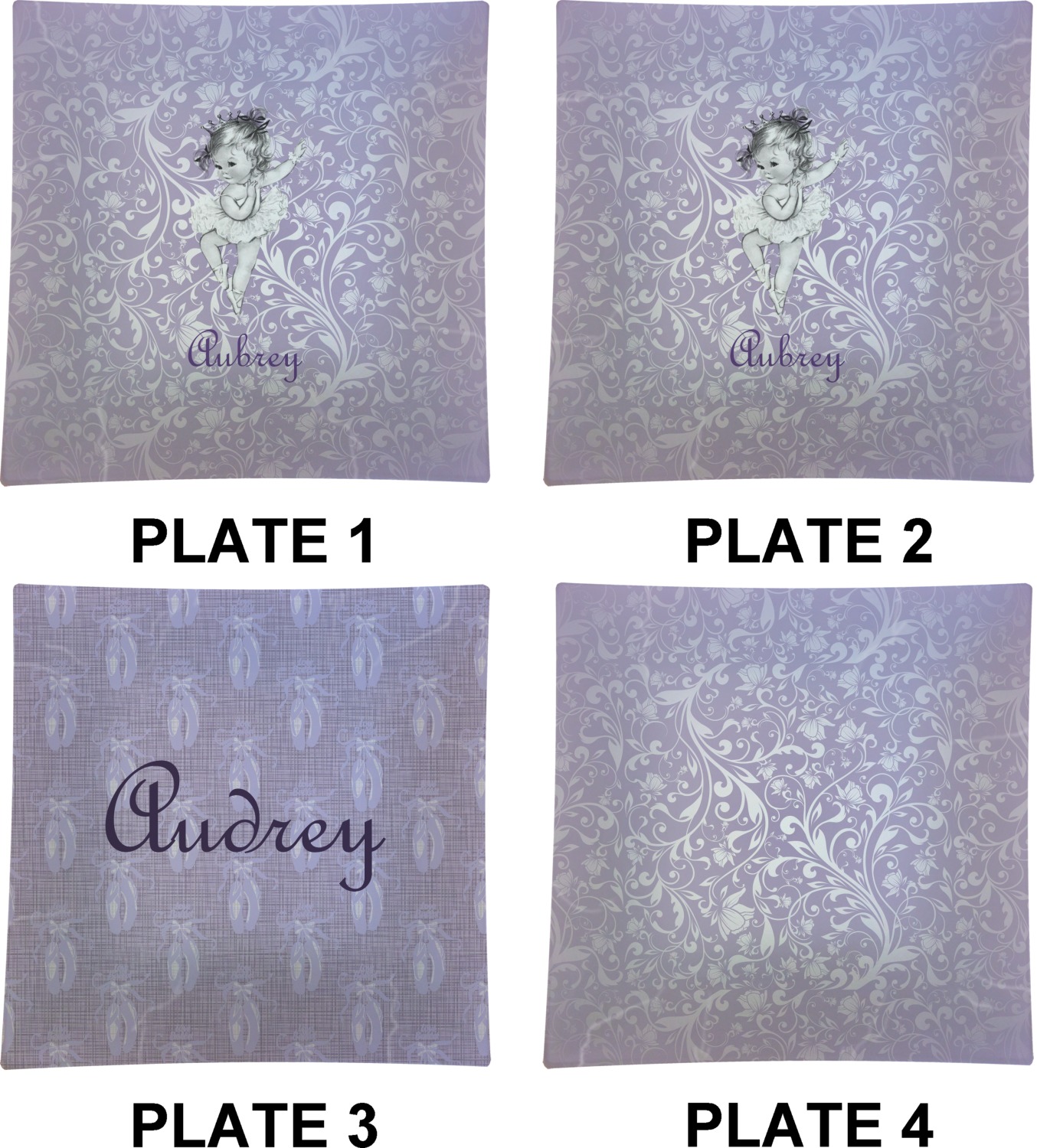 Our ballerina design is simply stunning and is perfect for the baby or little girl that is going to grow up to be a ballerina. We have create yet another layered design. The background is a beautiful, elegant floral pattern that we have done purple/lavender tone on tone color. Our second background is a subtle radial fill to highlight our beautiful ballerina. In the foreground, we have our beautiful vintage ballerina. For personalization, we added her name in a simple upright script font.