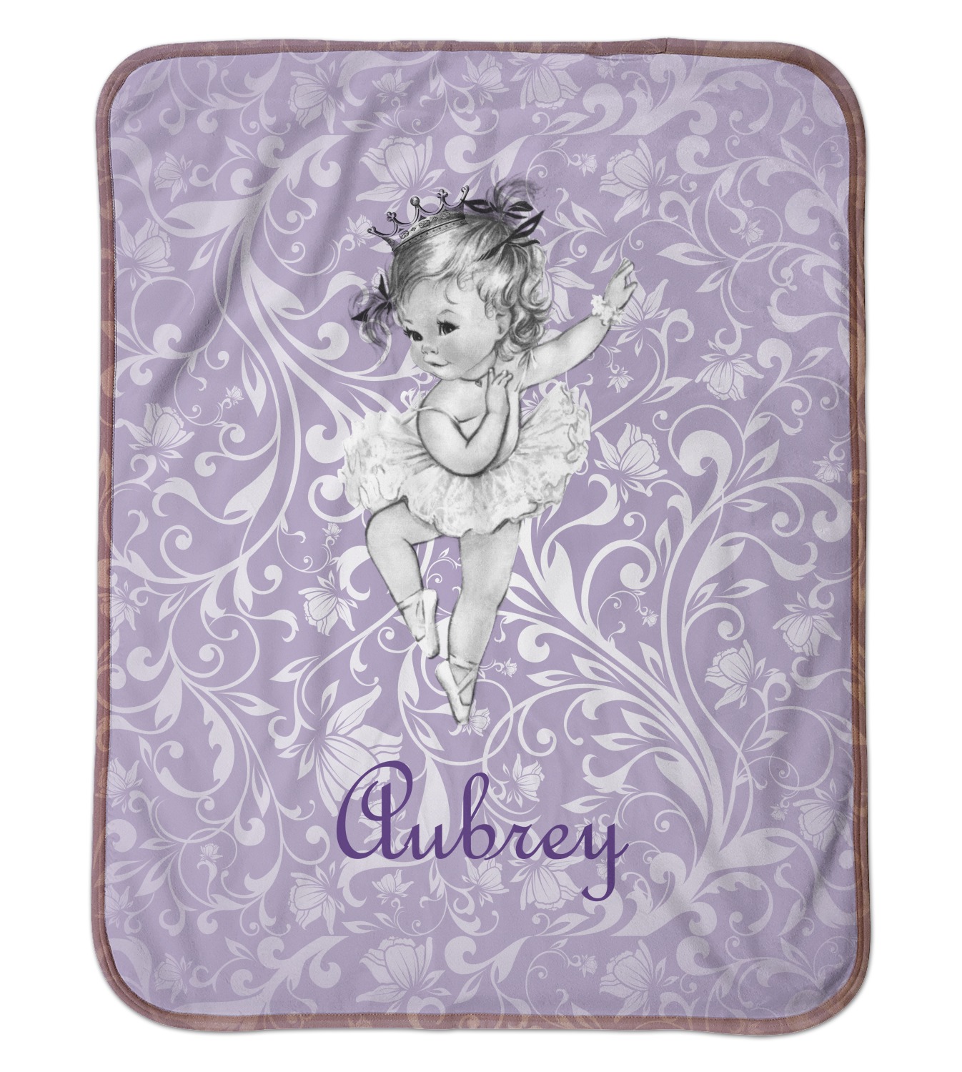 Our ballerina design is simply stunning and is perfect for the baby or little girl that is going to grow up to be a ballerina. We have create yet another layered design. The background is a beautiful, elegant floral pattern that we have done purple/lavender tone on tone color. Our second background is a subtle radial fill to highlight our beautiful ballerina. In the foreground, we have our beautiful vintage ballerina. For personalization, we added her name in a simple upright script font.