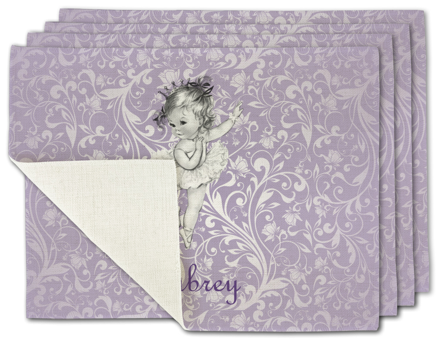 Our ballerina design is simply stunning and is perfect for the baby or little girl that is going to grow up to be a ballerina. We have create yet another layered design. The background is a beautiful, elegant floral pattern that we have done purple/lavender tone on tone color. Our second background is a subtle radial fill to highlight our beautiful ballerina. In the foreground, we have our beautiful vintage ballerina. For personalization, we added her name in a simple upright script font.