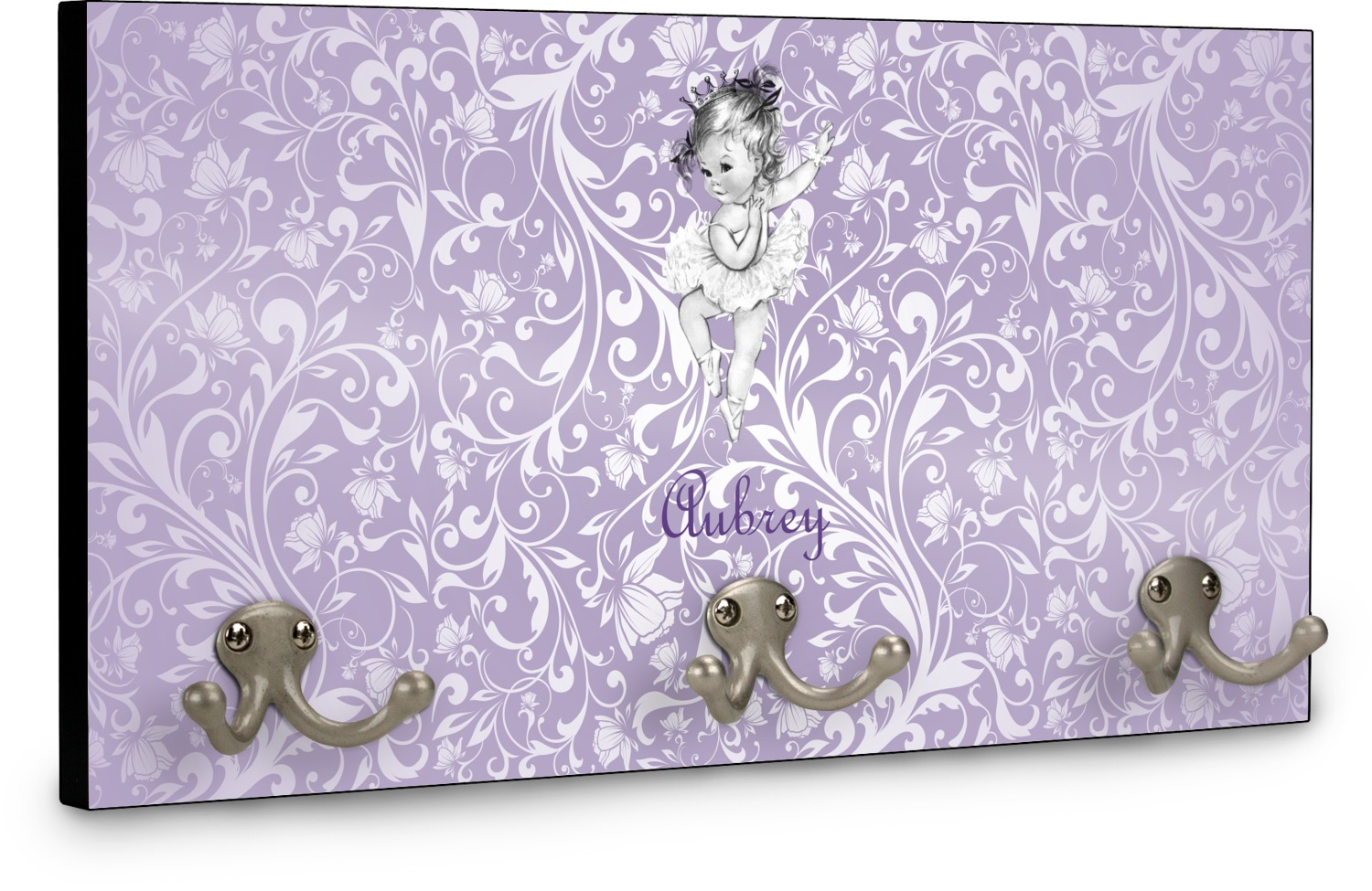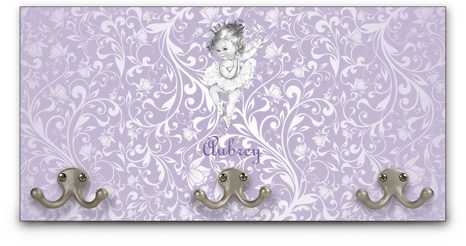 Our ballerina design is simply stunning and is perfect for the baby or little girl that is going to grow up to be a ballerina. We have create yet another layered design. The background is a beautiful, elegant floral pattern that we have done purple/lavender tone on tone color. Our second background is a subtle radial fill to highlight our beautiful ballerina. In the foreground, we have our beautiful vintage ballerina. For personalization, we added her name in a simple upright script font.