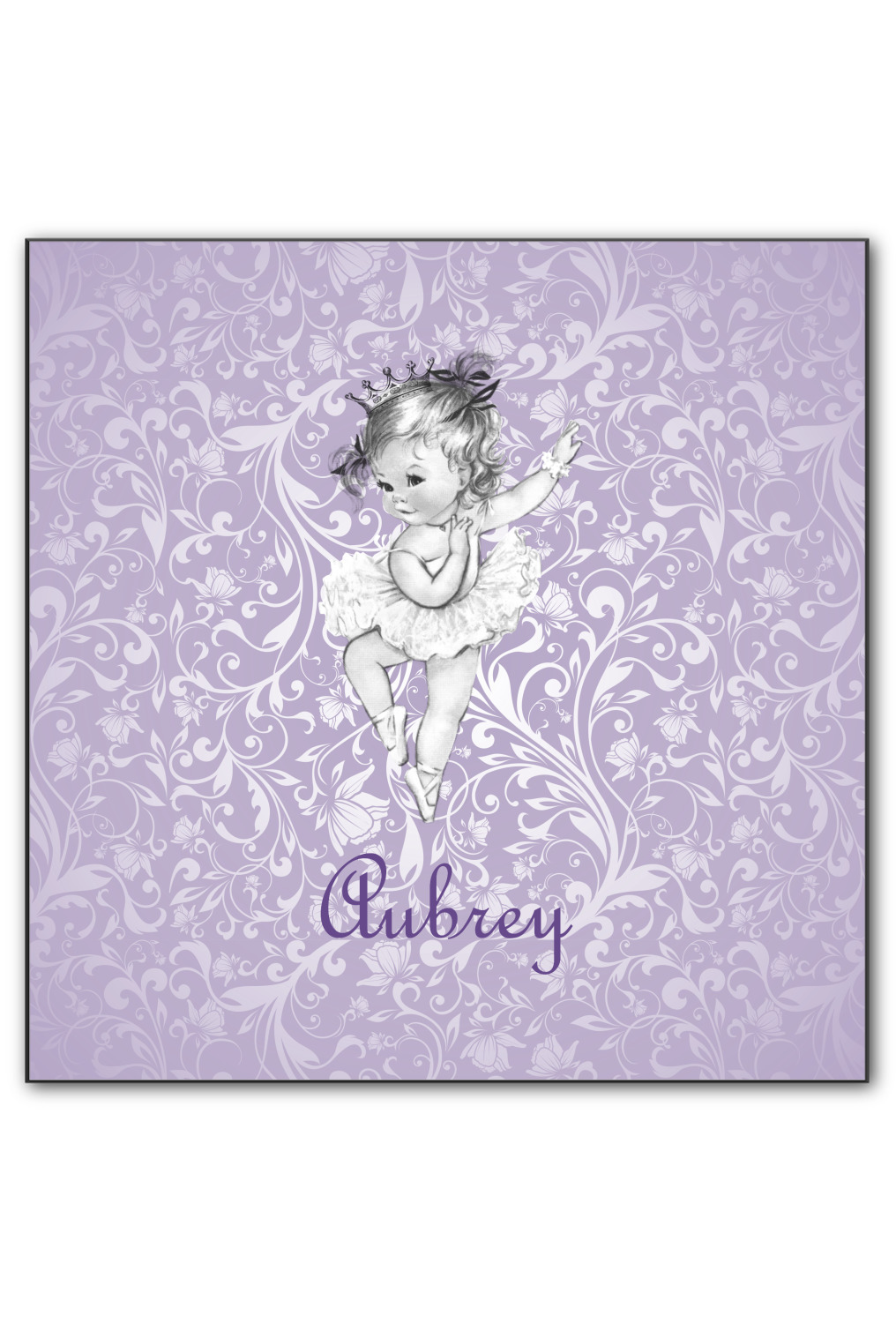 Our ballerina design is simply stunning and is perfect for the baby or little girl that is going to grow up to be a ballerina. We have create yet another layered design. The background is a beautiful, elegant floral pattern that we have done purple/lavender tone on tone color. Our second background is a subtle radial fill to highlight our beautiful ballerina. In the foreground, we have our beautiful vintage ballerina. For personalization, we added her name in a simple upright script font.