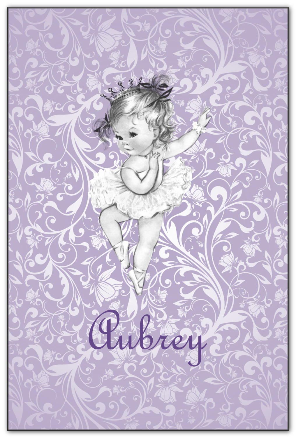Our ballerina design is simply stunning and is perfect for the baby or little girl that is going to grow up to be a ballerina. We have create yet another layered design. The background is a beautiful, elegant floral pattern that we have done purple/lavender tone on tone color. Our second background is a subtle radial fill to highlight our beautiful ballerina. In the foreground, we have our beautiful vintage ballerina. For personalization, we added her name in a simple upright script font.