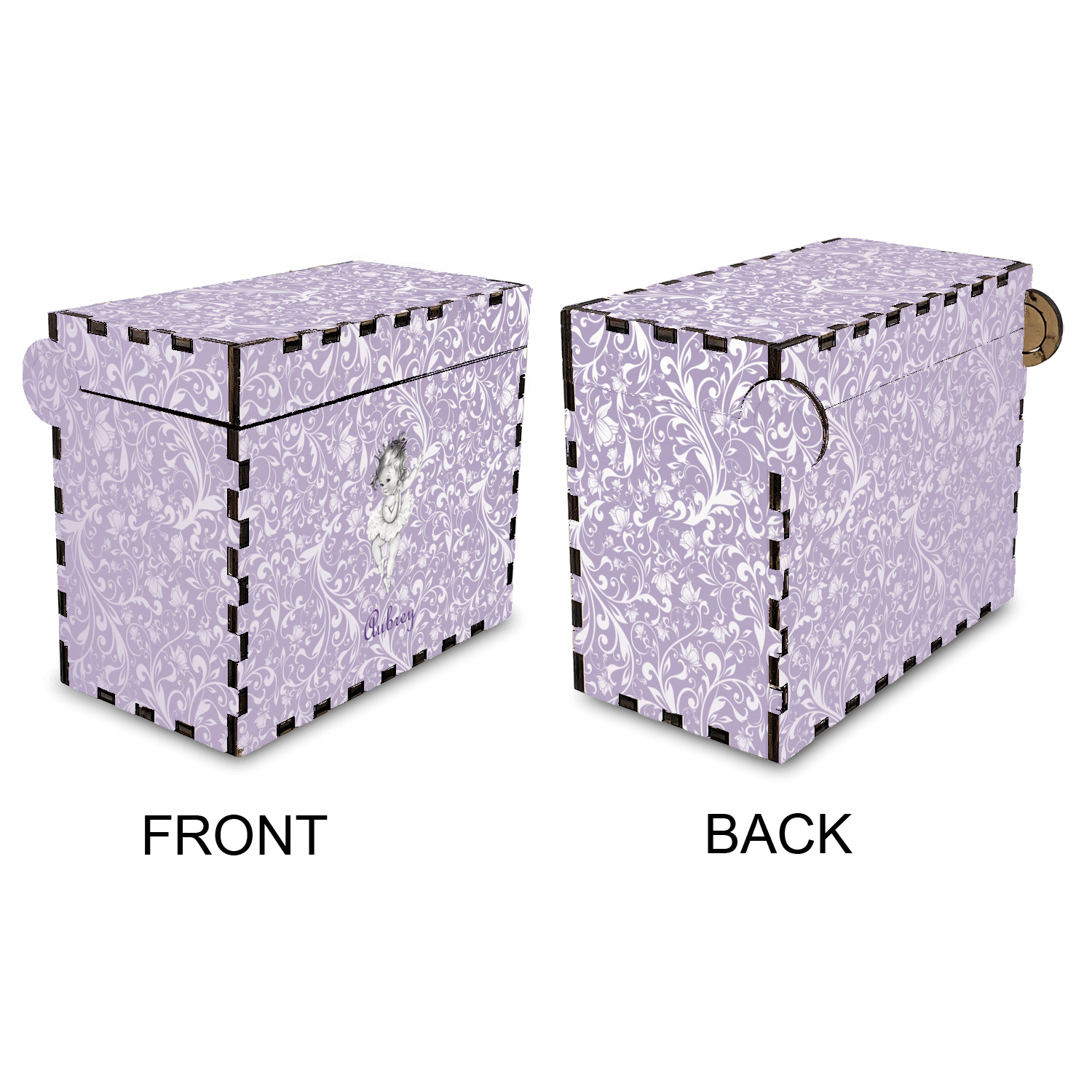 Our ballerina design is simply stunning and is perfect for the baby or little girl that is going to grow up to be a ballerina. We have create yet another layered design. The background is a beautiful, elegant floral pattern that we have done purple/lavender tone on tone color. Our second background is a subtle radial fill to highlight our beautiful ballerina. In the foreground, we have our beautiful vintage ballerina. For personalization, we added her name in a simple upright script font.