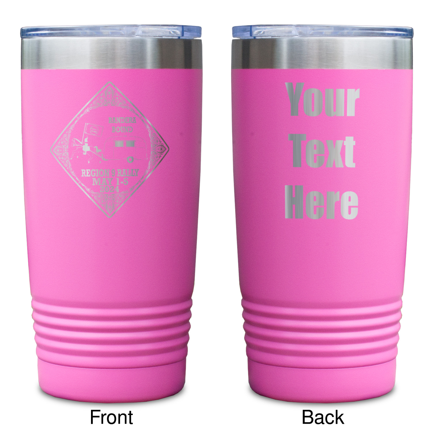 Available in 8 unique colors, these cups are crafted from 18/8 stainless steel and powder coated for their durable finish. With the 8 colors being Black, Pink, Red, Teal, White, Grey, Royal Blue, and Olive Green, you are sure to find a cup to fit your personality. You can chose to engrave on the front or the front and back of the cup. Use our design studio to design your own cup and we laser engrave it for you.