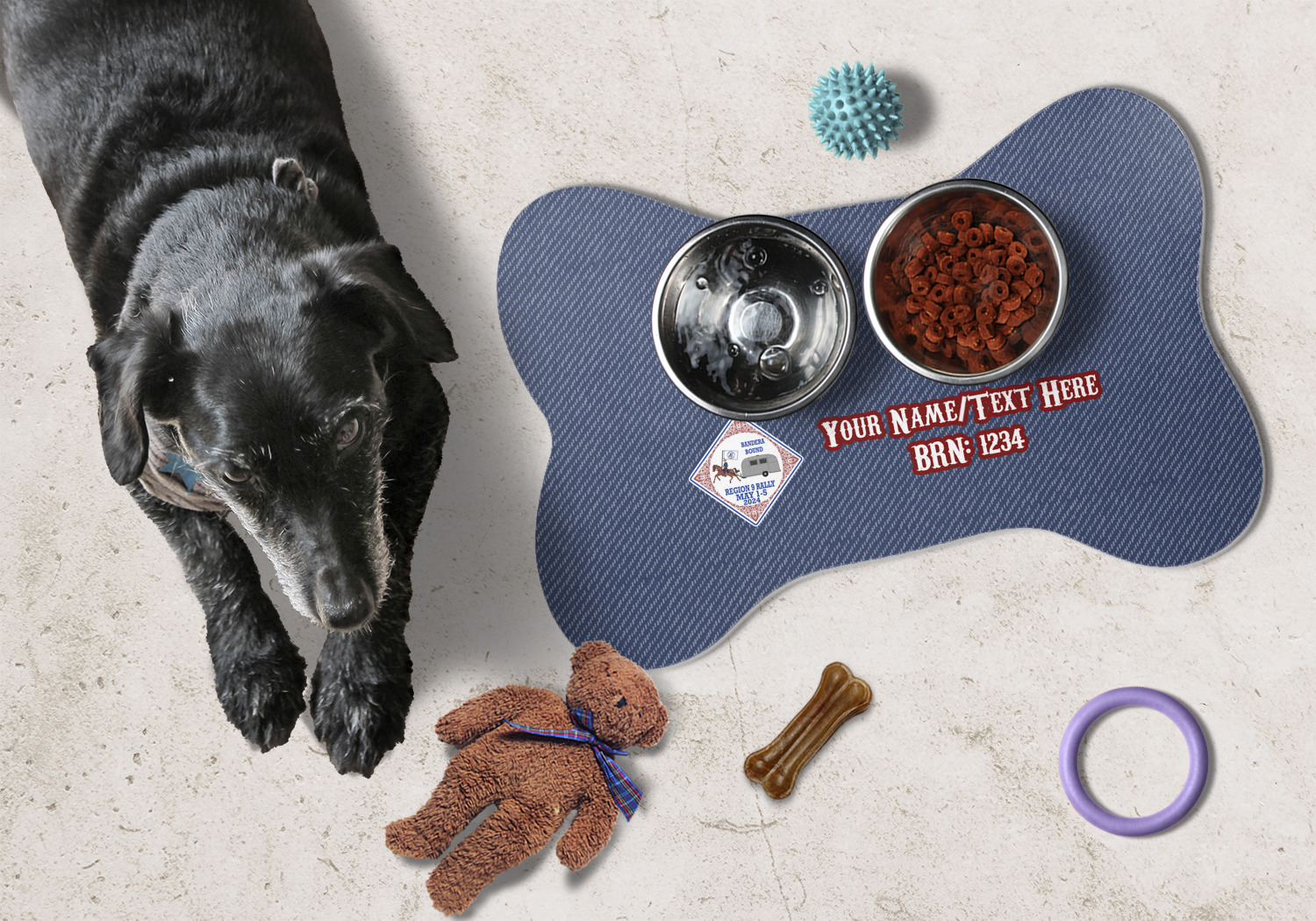 If you are purchasing a pet food mat, consider a customized dog bowl, dog collar, a bone-shaped dog tag, or any other pet supplies to match! Check out our Pet Accessories category for even more options! Craft a design that you want to extend to your eating area? Try our Home and Garden category for kitchen decor options!