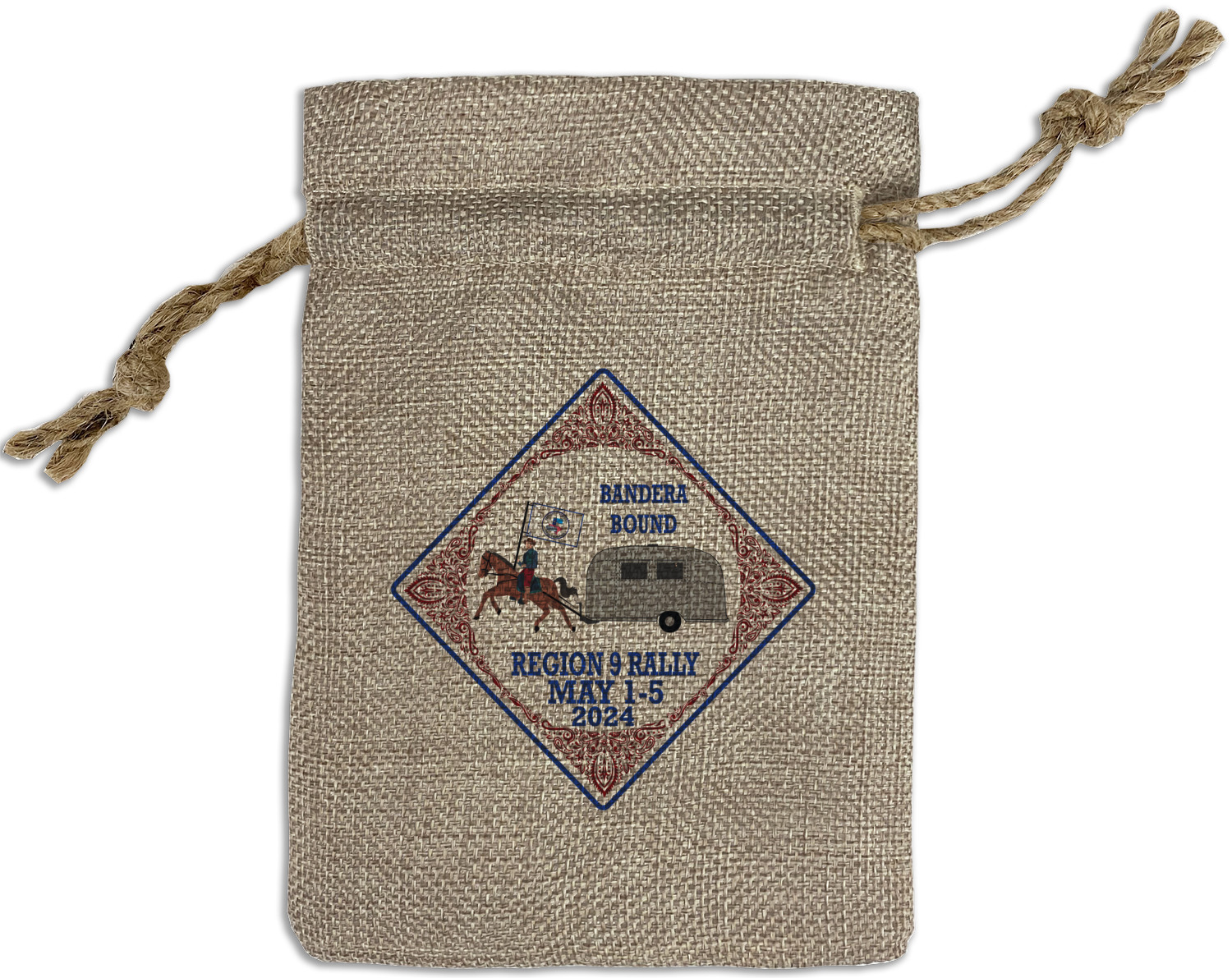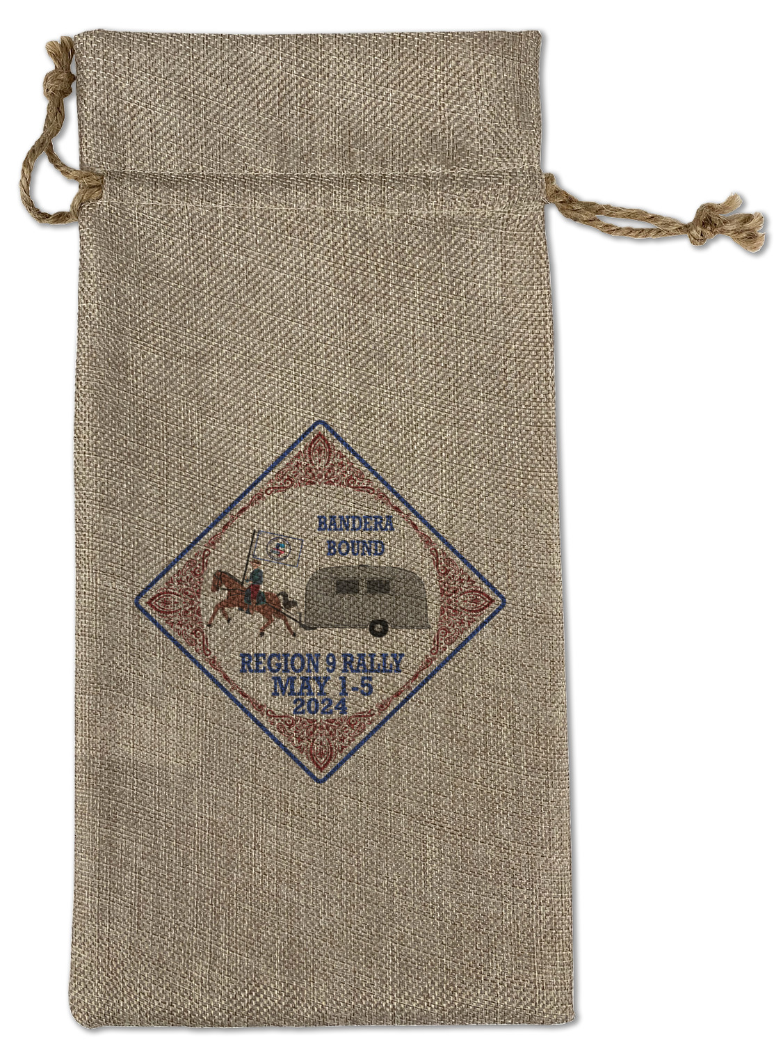 We sell our Burlap Gift Bags in 3 variant sized bags. Made with burlap polyester, each personalized bag can be secured with a twine drawstring pull. Your custom design is available to print on one side or both sides - completely up to you! The sizes of the bags measure approximately 4.5" x 6.5" for the smallest size, 6.5" x 8.0" for the medium size, and 6.5" x 13.5" for the large-sized bag.