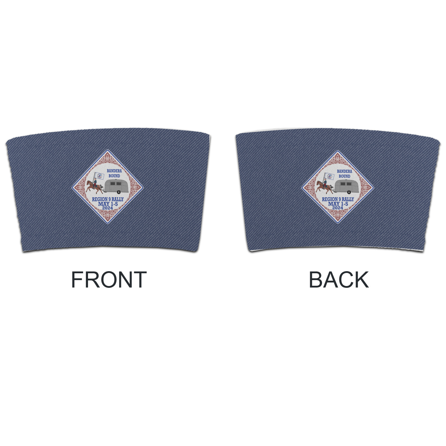 Made from neoprene with a polyester outer fabric and sewn seams, these coffee cup sleeves are very durable and will hold up to heavy use. The neoprene helps to insulate your cup to keep it warm while drinking. They are designed to lay flat when not in use.