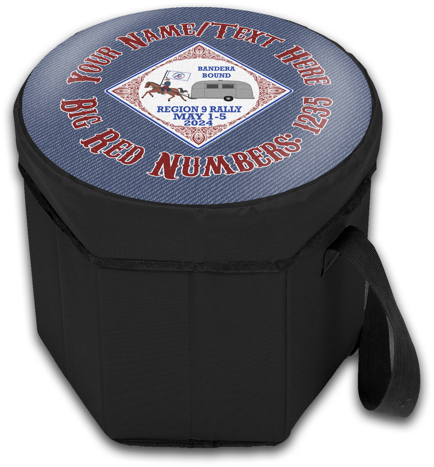Our collapsible insulated coolers feature a unique six-sided hexagon shape, are lightweight, durable and can be turned into a seat. This cooler is fully insulated with silver foil lining to keep food and drinks hot or cold, and has a 12-quart capacity. Although this cooler collapses for easy transport, hidden inside are composition panels made of sturdy wood that give the frame strength and allow this cooler to be used as a seat. Simply sit down on the personalized cover and give your legs a break! (Maximum weight capacity of 200 pounds.)