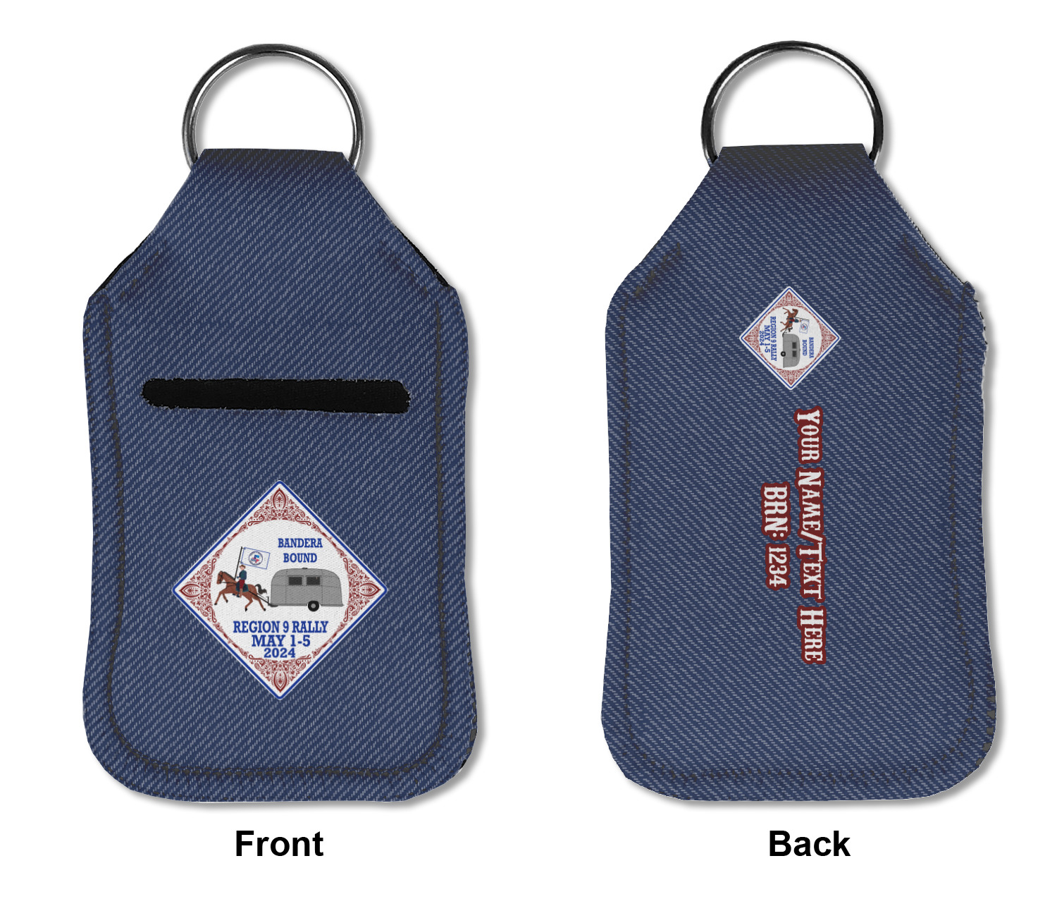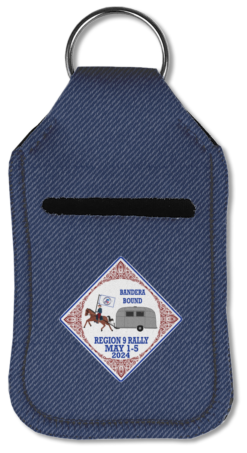 Each hand sanitizer holder comes with its own empty travel-sized, refillable hand sanitizer sure to fit snug in your customized sanitizer case! Our hand sanitizer cases are a durable, yet soft neoprene material sure to last any daily activities or travel agenda. Customize and personalize a hand sanitizer bottle holder with one of our two sizes - small (4.25" x 2.25") or large (5.5" x 2.5"). Each travel sanitizer holder comes with a keyring for attachment on bags, keys, or more!