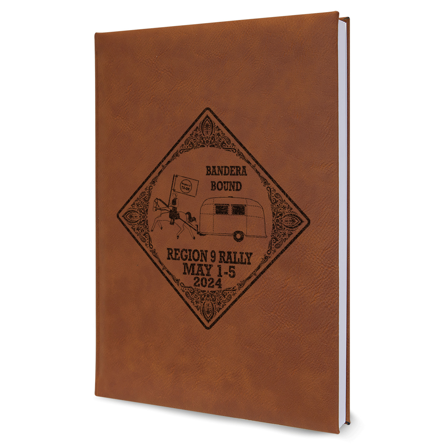 The faux leather covers are a rich cognac / rawhide color and can be customized with your design. From a simple name or monogram or a logo to a detailed mandala - the choice for customization & personalization is truly yours. Customize one of our designs or upload your own.
