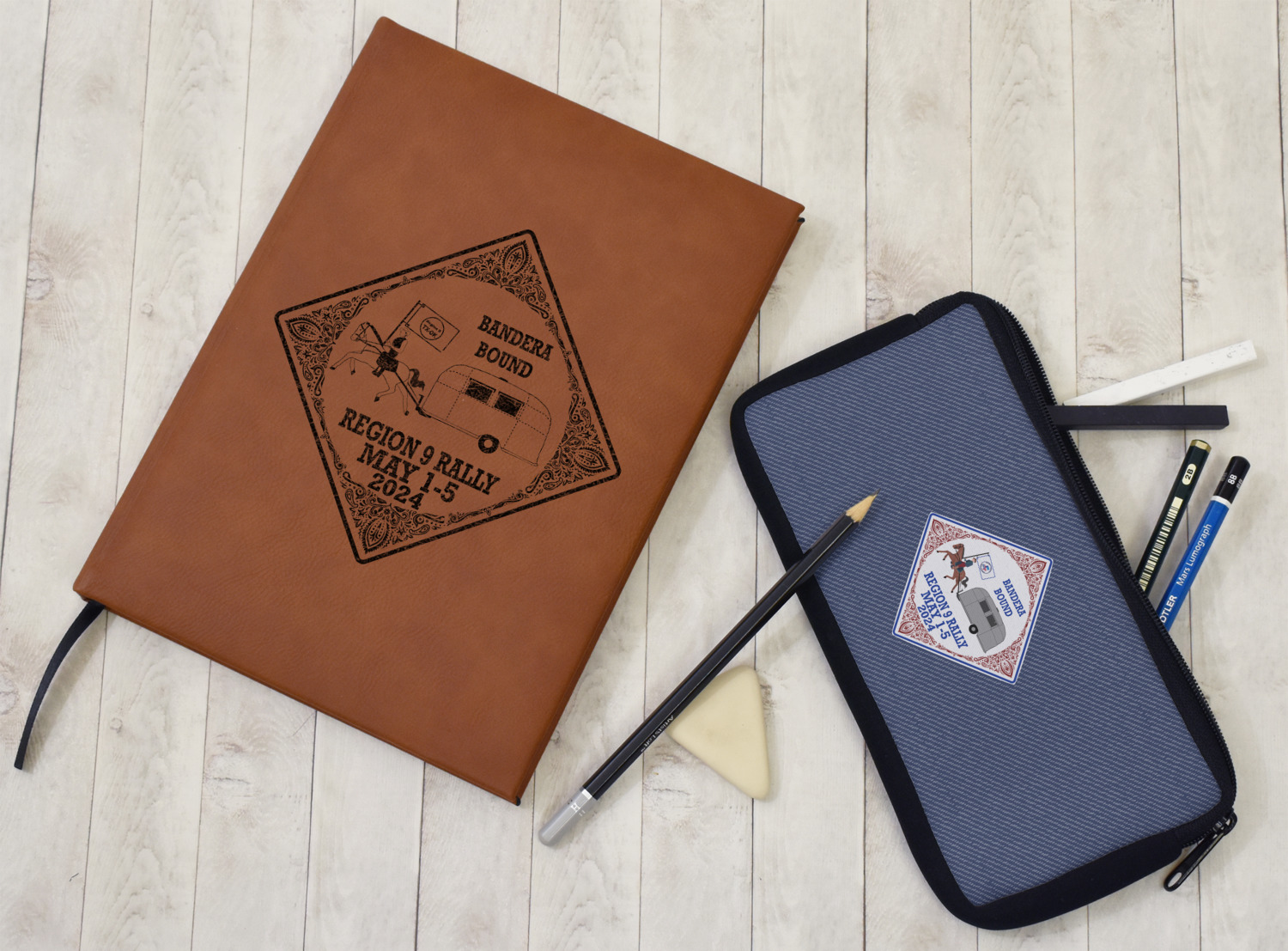 The faux leather covers are a rich cognac / rawhide color and can be customized with your design. From a simple name or monogram or a logo to a detailed mandala - the choice for customization & personalization is truly yours. Customize one of our designs or upload your own.