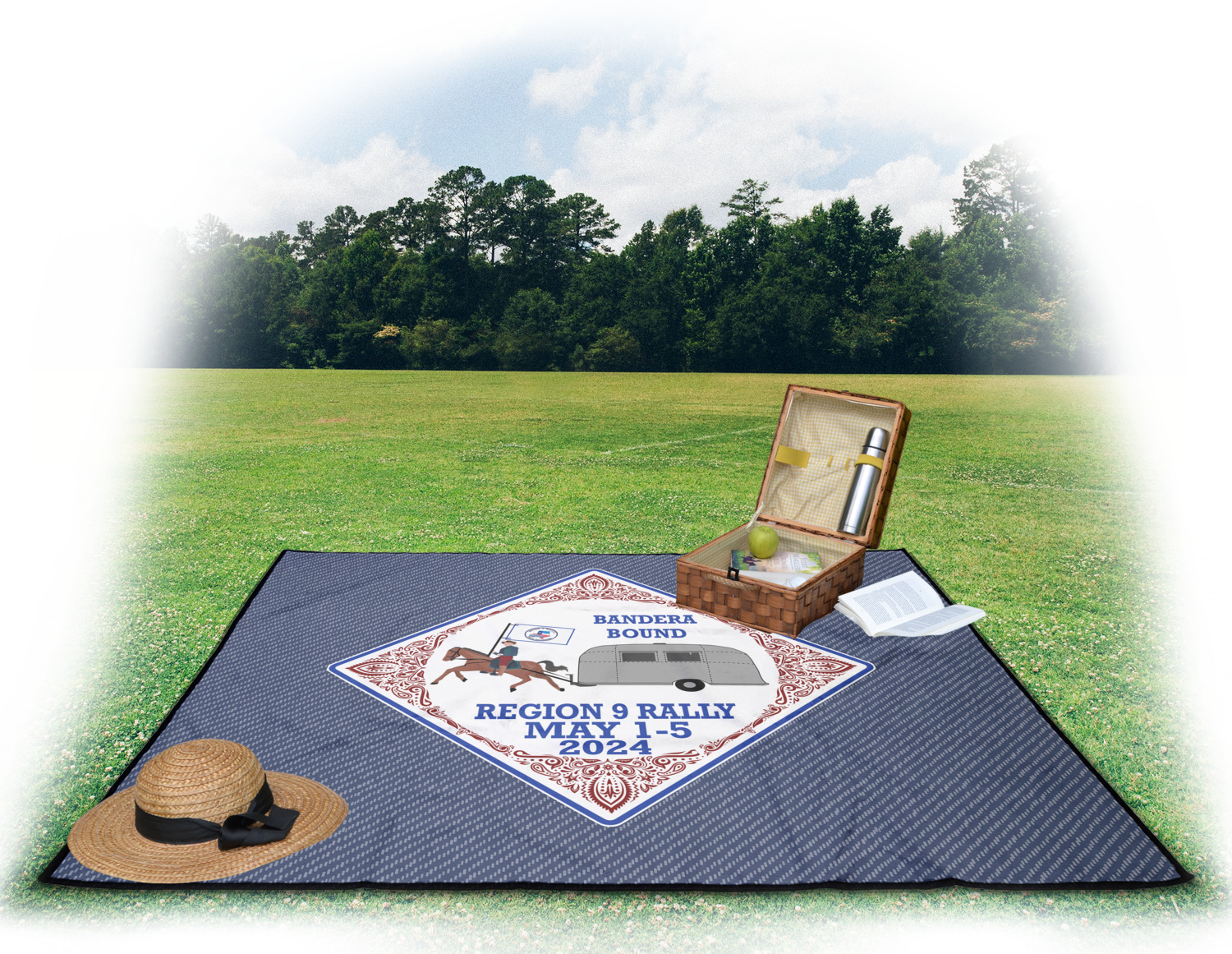 This picnic blanket is perfect for hanging out with your friends at the park or anywhere outside. The top of the blanket is made of a super soft microfiber fleece. The bottom of the blanket is made of a black material similar to a rain jacket and is water repellent as well. This will keep any wet spots on the ground from soaking through your picnic blanket. No one likes a wet blanket. The blanket measures at approximately 50" x 59" and has a nicely finished ribbon edge.