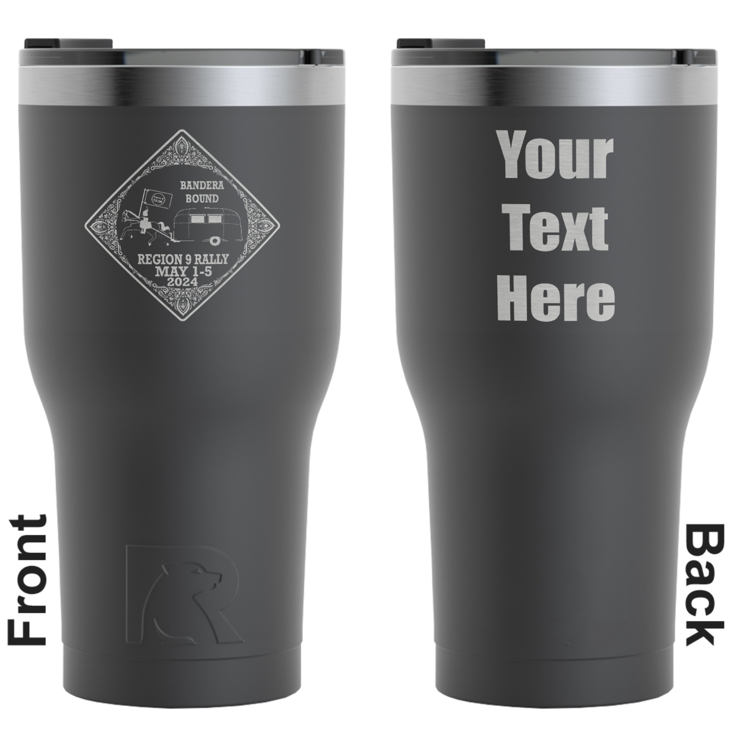 We sell these RTIC 30 Oz Tumblers in three different colors with two different engraving options. Choose from our selection of teal, white, or black. You can either choose to engrave the front only or both front and back. Your engravement will reveal the stainless steel material beneath the powder color coating, creating your personalization in a beautiful silver.