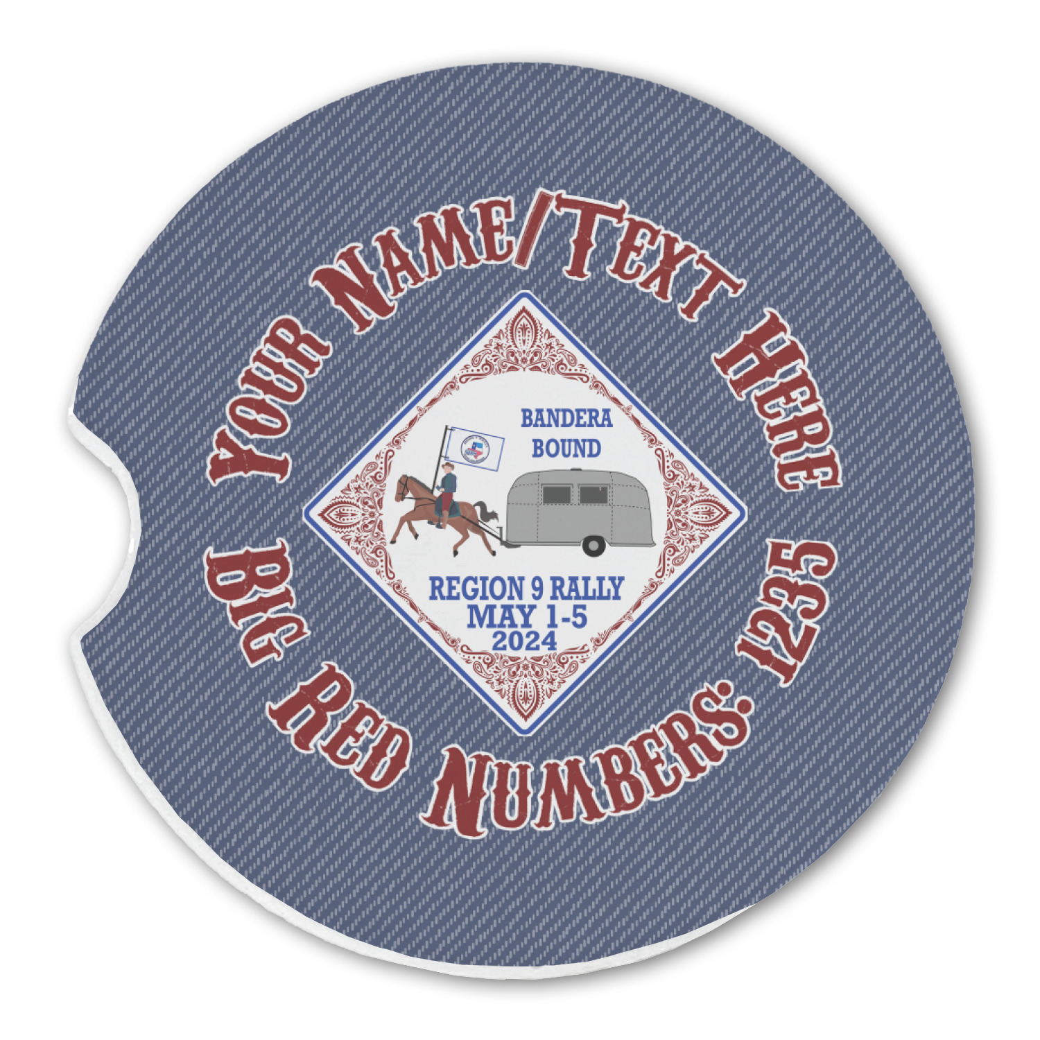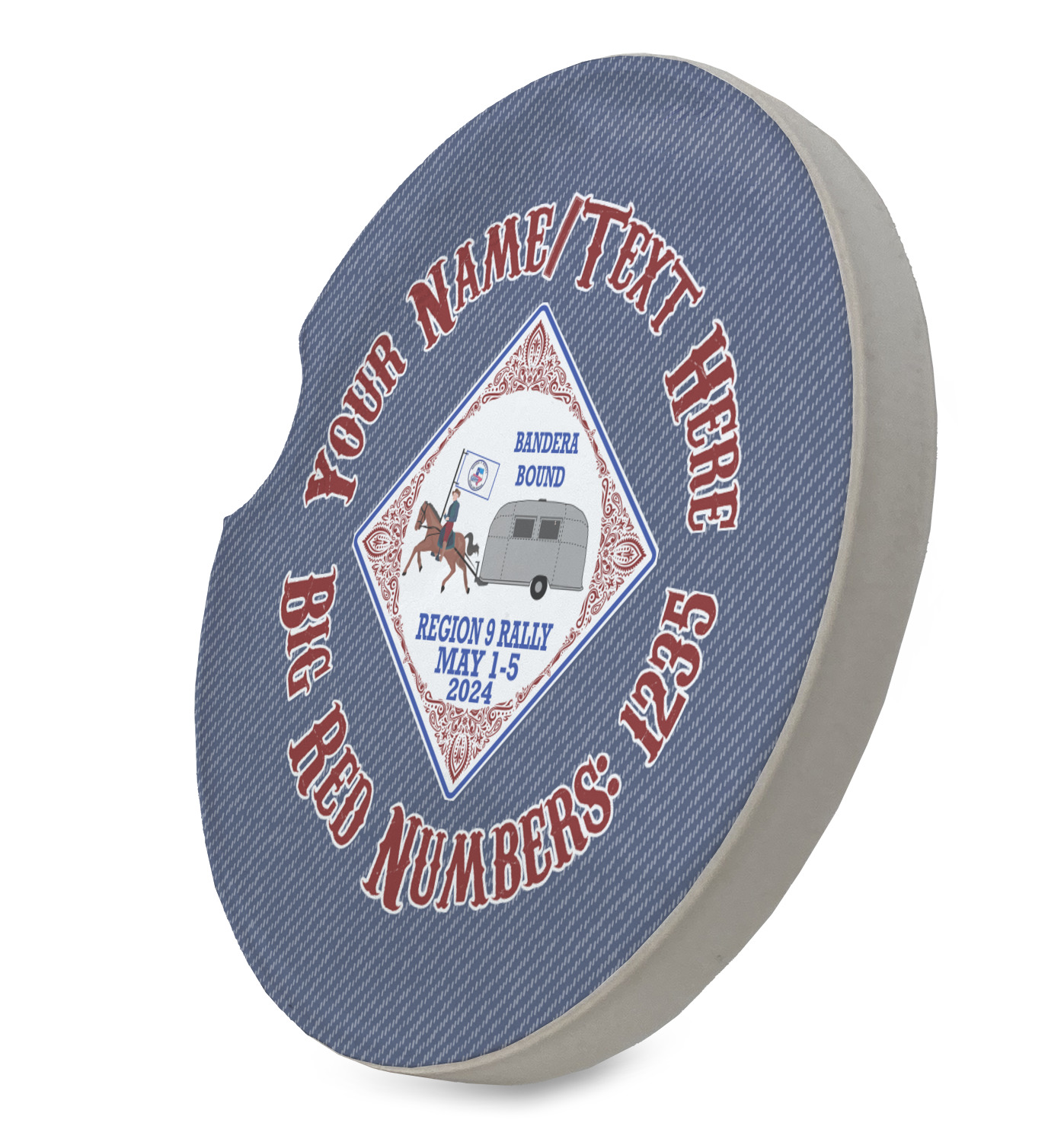These sandstone coasters are round, robust, and feature a smoothed glossy side to exhibit your customized design. With a 2.5 inch diameter, these stone coasters will fit snugly inside most cup holders. This model also features a semi-circle shaped divot that allows for easy removal, despite the tight fit. You can purchase these car cup holder coasters in a pair, or singularly, depending on your needs.
