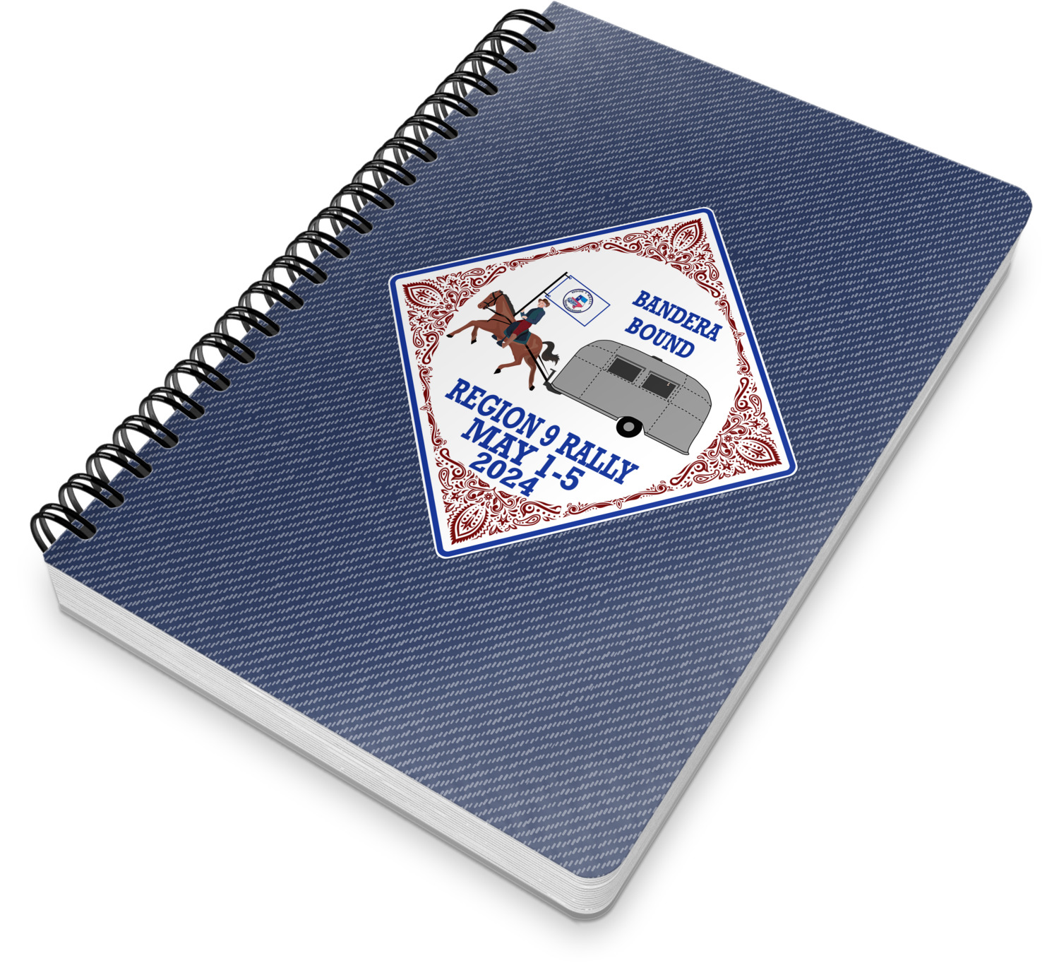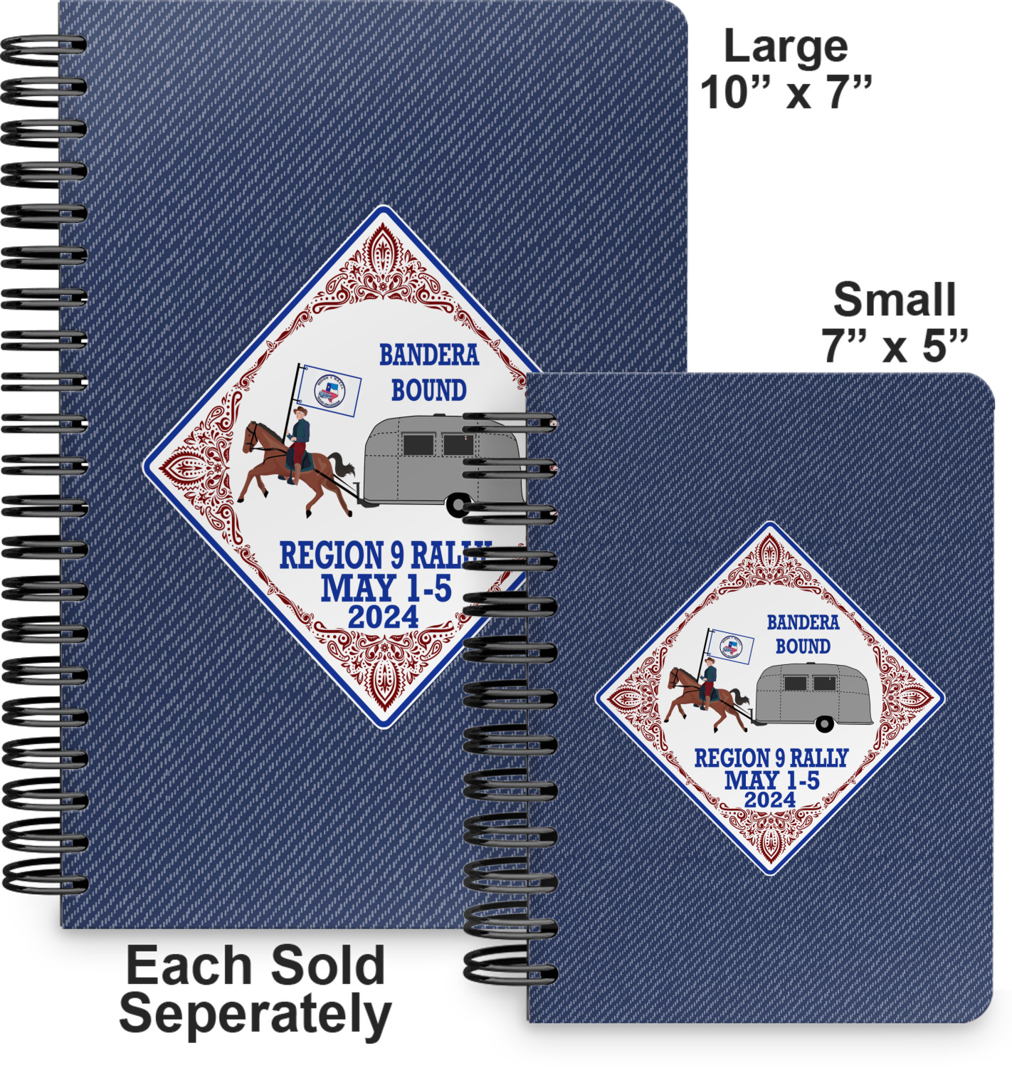 This spiral notebook includes 75 sheets of thick, ruled paper. The front and back of this custom notebook is made of a robust, laminate, plastic covering. We print your personalization on these two panels, underneath a glossy finish, which emphasizes the colors of your design. The two panels and the sheets of paper are held together by a sturdy, black coil. The paper within your bound notebook is perforated for easy, clean tearing.