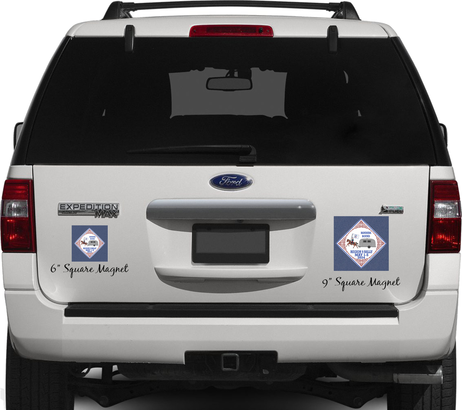 Your personalized car magnets are available for purchase in two shapes and two sizes. We carry round and square editions; each shape can either be 6 by 6 inches, or 10 by 10 inches, depending on your needs. Both versions are 1 millimeter thick, which is considered, within the industry, as the ideal thickness for automobile magnets. The magnetic car decals will adhere to any smooth, metal surface of your cars body, such as the trunk door or a side panel. However, please note that some vehicles are constructed from fiberglass bodies, which prevents the adhesion of anything magnetic. We advise that you test your vehicle before purchasing these magnets.