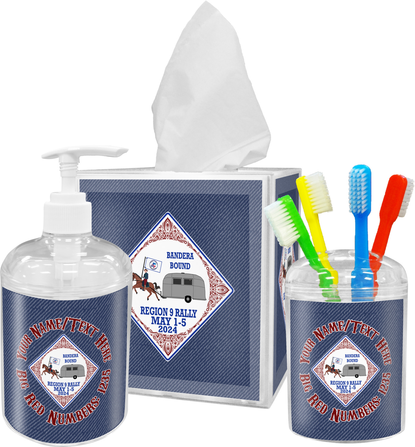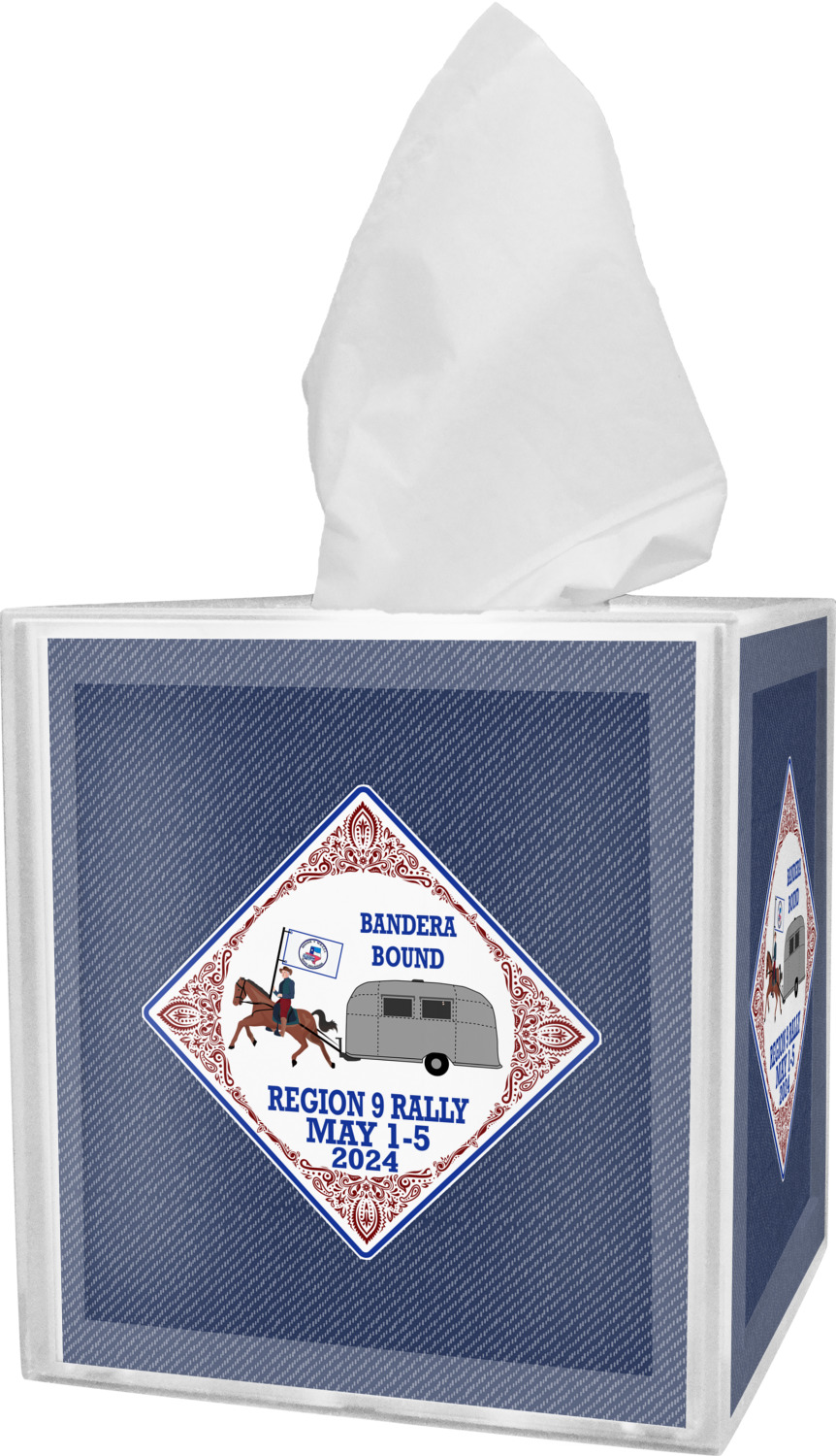 These tissue holders are built from durable acrylic and display your unique personalization on fine-quality vinyl inserts placed within the four sides and top. The box features two pieces, allowing you to easily switch out tissue boxes. On the sides, youll find ridges that ensure the top and base fit securely in place. The bottom of these tissue box holders has four, rubber, non-slip pads to prevent the box from scuffing any surface you decide to display it on. Each box can fit a standard 5 by 5-inch box of tissues.