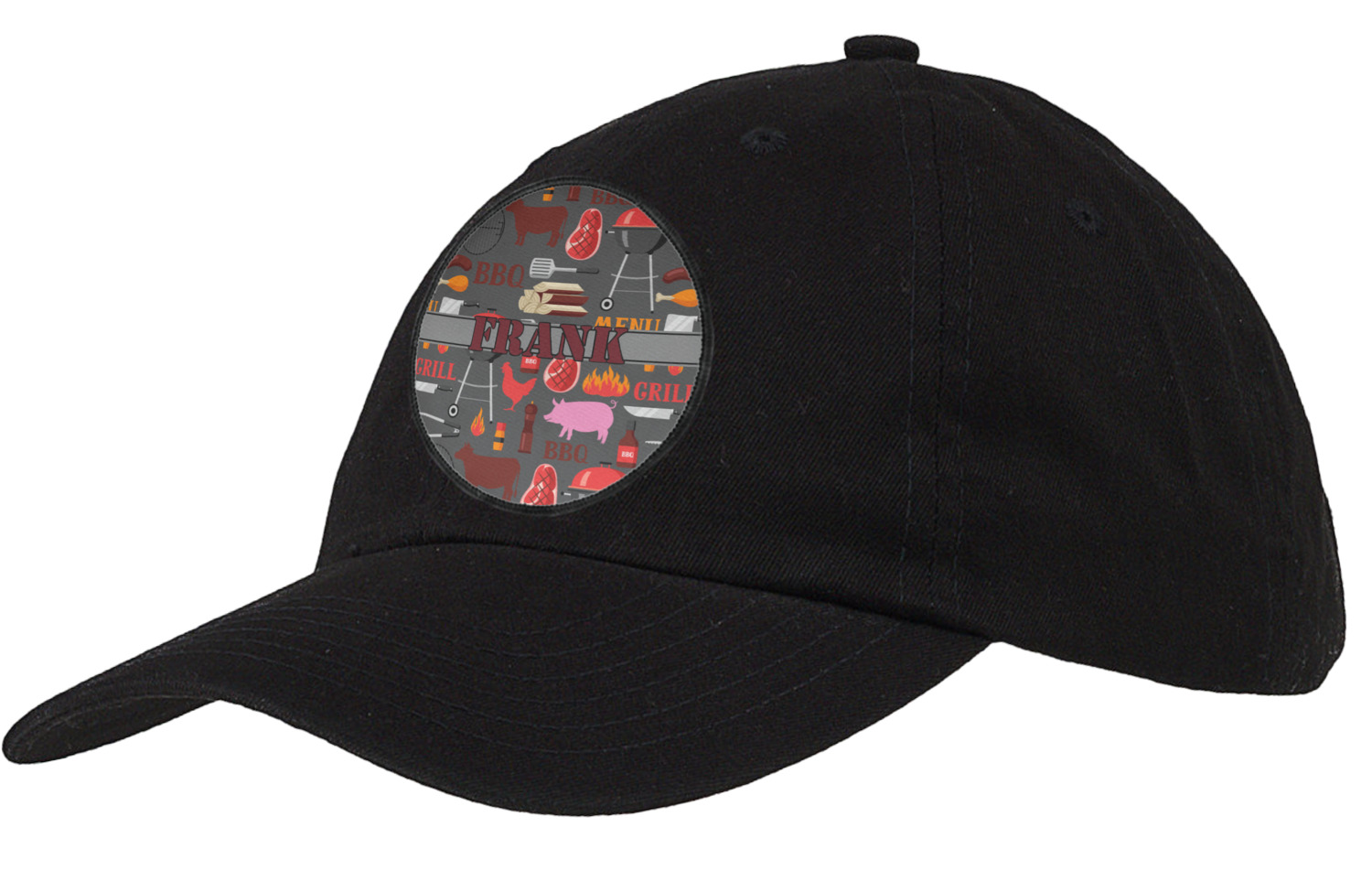 This design features pigs, cows, grills, and more on a simple grey background. There are wonderful contrasting reds, oranges, and charcoals in this manly design. The ribbon across the middle fits your personalization right in the middle.