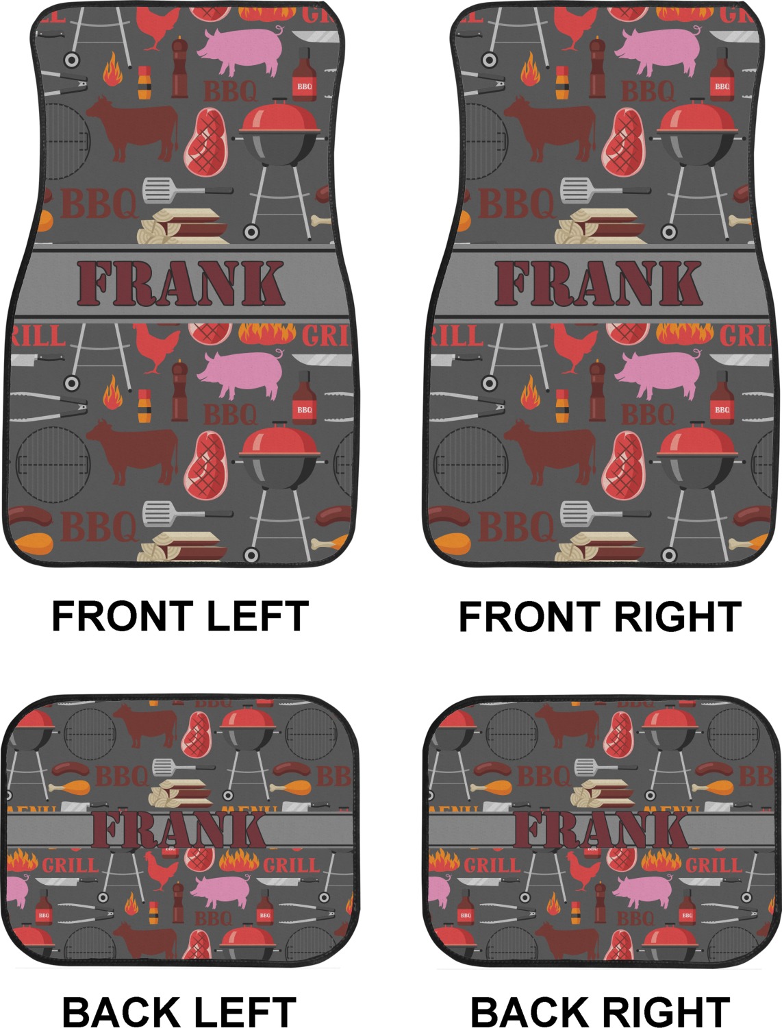 We craft our auto floor mats mats from polyester, apply a black finish to the edges, and lined at the bottom to prevent slippage. These mats protect your floors from grass, mud, and any accidental spills. We display your personalized design on the front face of each mat. The sizes of these car floor liners are standardized to provide a versatile fit for all vehicles. The front rows car mats measure at 17 by 26.5 inches, while the back rows measure at 17 by 13 inches. We sell three packages of car floor mats. You can purchase a pair of front row car mats, a pair of back row car mats, or a set of front row and back row car mats. To make an informed purchase, we recommend measuring the surface area of your car floors.