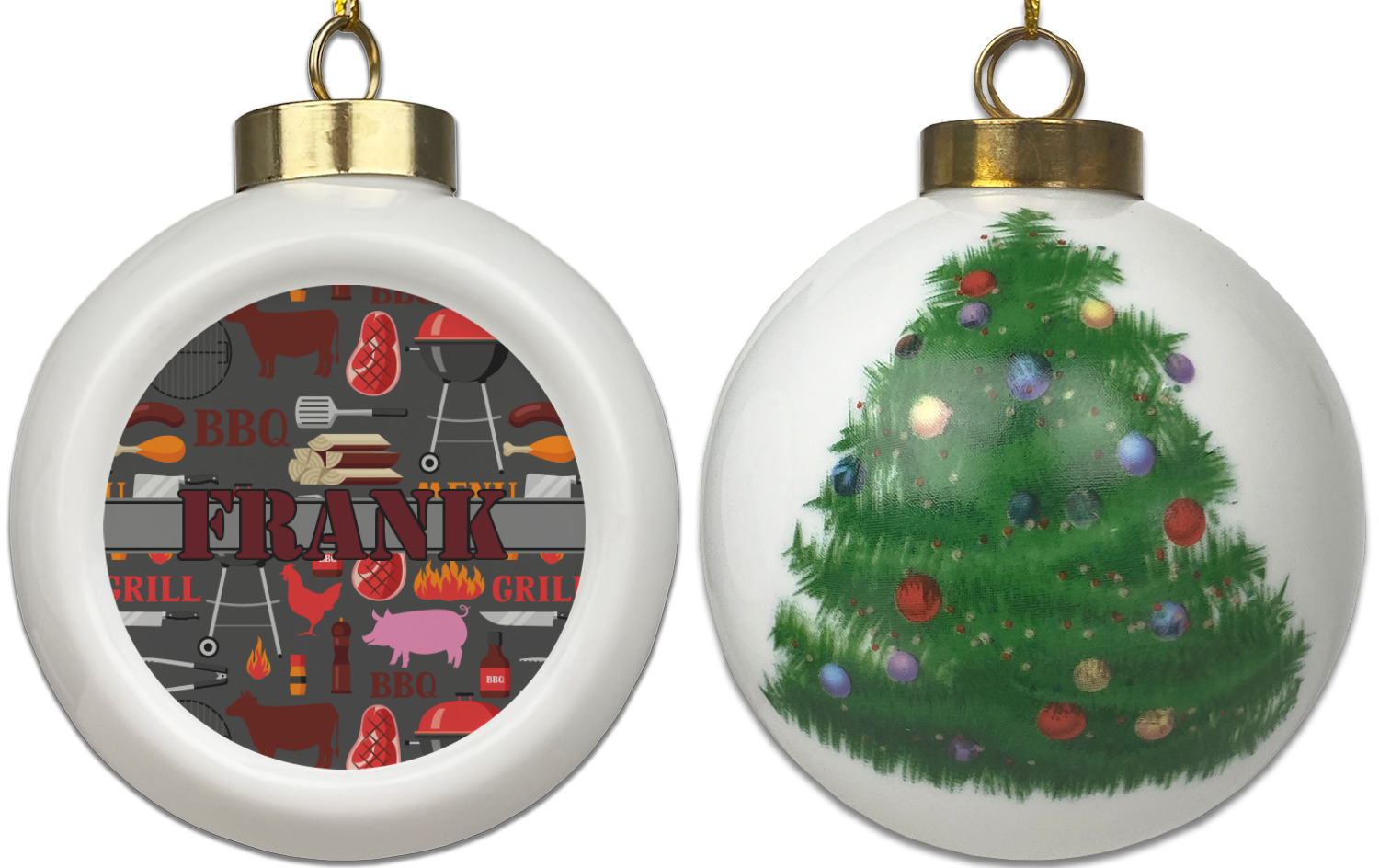 Our Christmas ornaments are a unique ceramic ball shape with a twist as it has a flat face to display your custom design! Select from one of our two design types - Christmas Tree or Poinsettia Garland - to adorn the curved back of your personal design. Each ornament measures 3H x 2.5W x 2D accompanied with a gold string accent for finishing touches to hang on your beautiful Christmas tree!