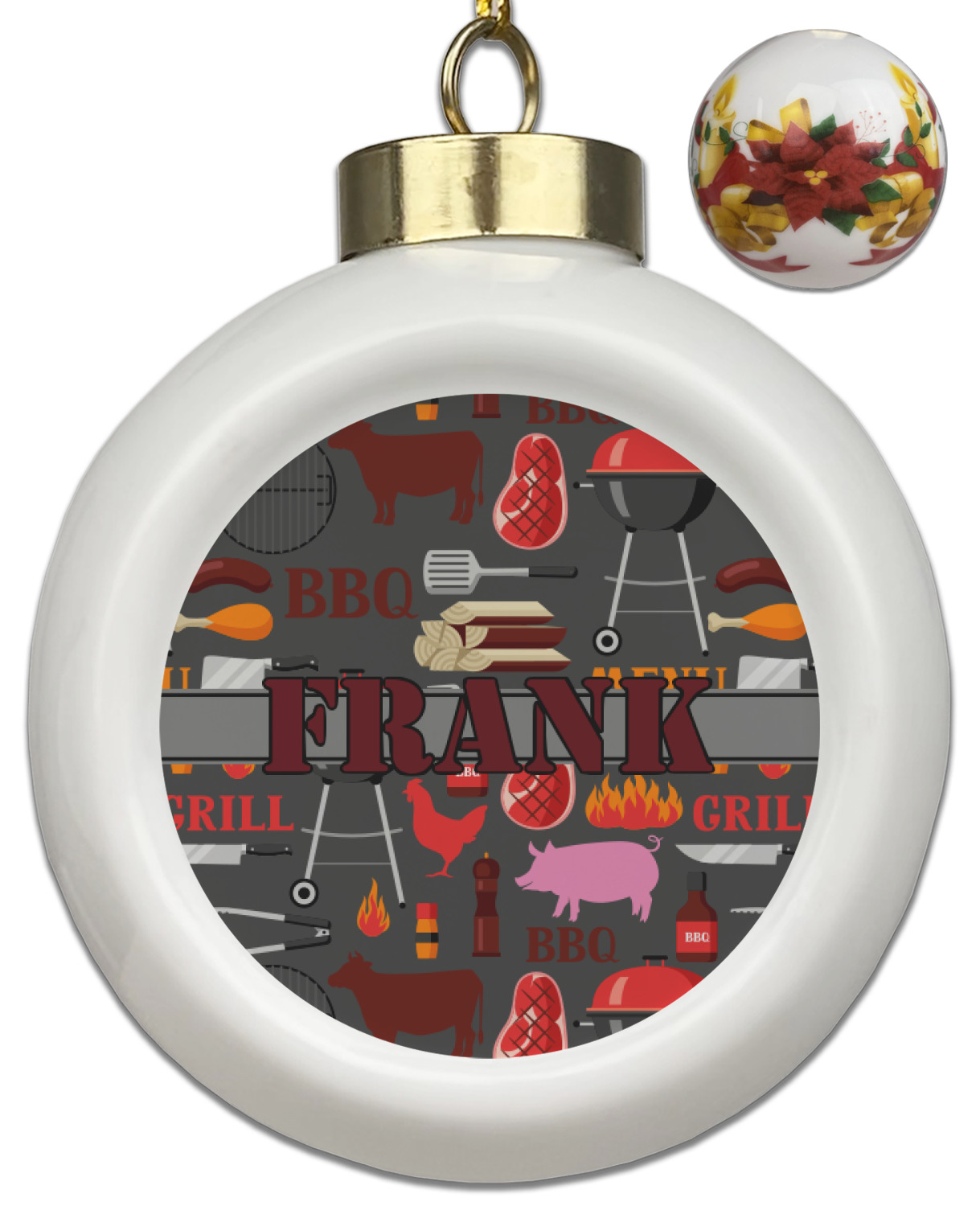 Our Christmas ornaments are a unique ceramic ball shape with a twist as it has a flat face to display your custom design! Select from one of our two design types - Christmas Tree or Poinsettia Garland - to adorn the curved back of your personal design. Each ornament measures 3H x 2.5W x 2D accompanied with a gold string accent for finishing touches to hang on your beautiful Christmas tree!