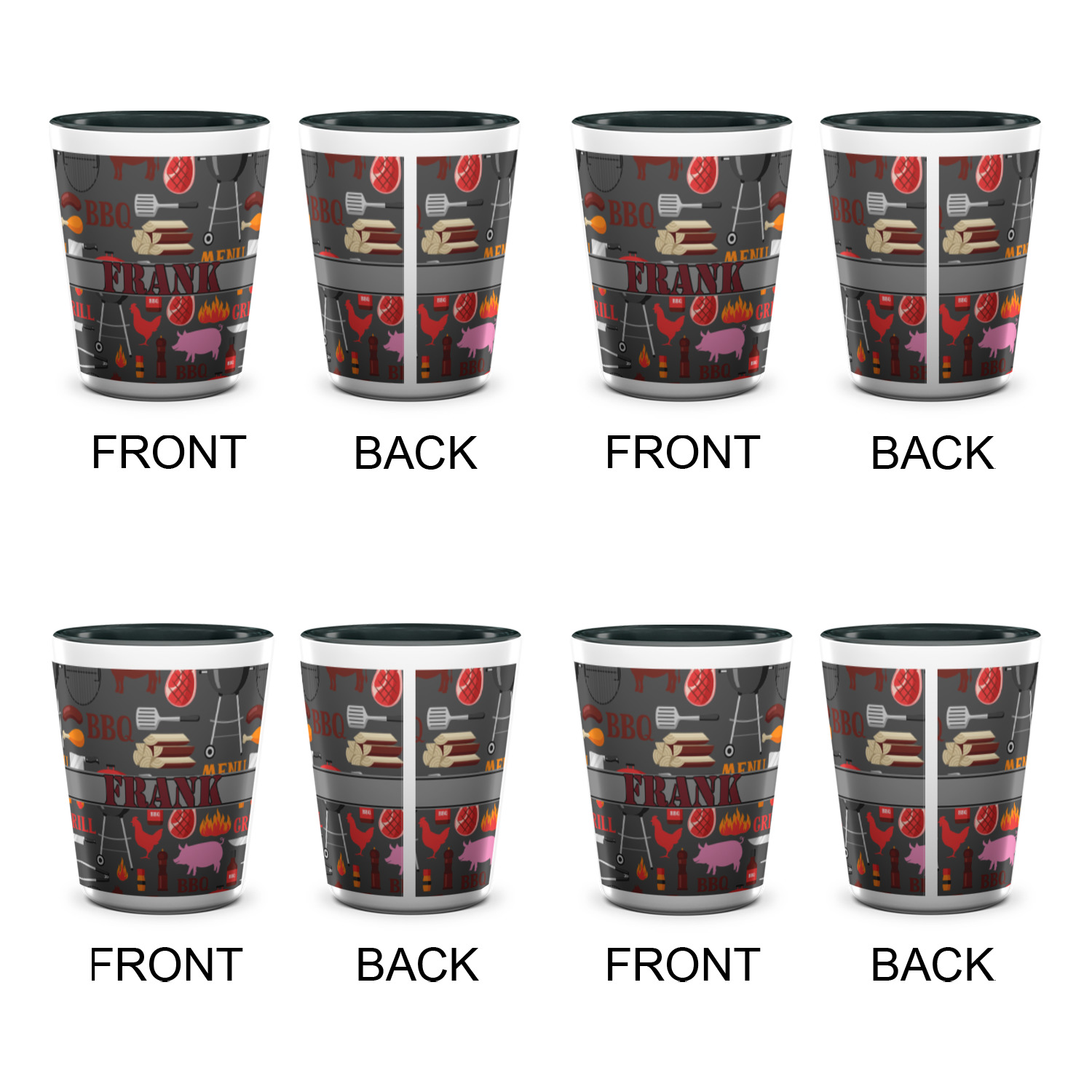 Made from ceramic these shot glasses are printed in full color with the design of your choice. These are a standard 1.5oz size and stand 2.25" tall. Available in a full white ceramic or a two-tone with a black color inside the shot glass. Buy a single or a set of 4, all of which can be designed separately to get you just what you want and need.