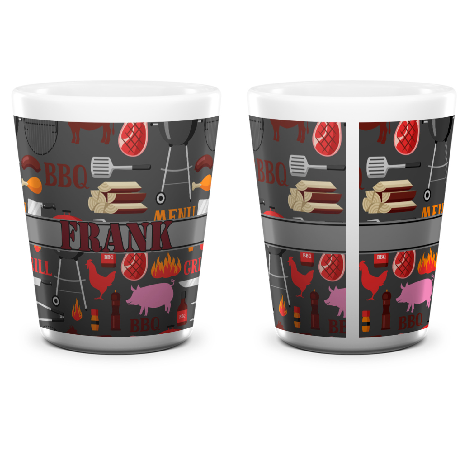 Made from ceramic these shot glasses are printed in full color with the design of your choice. These are a standard 1.5oz size and stand 2.25" tall. Available in a full white ceramic or a two-tone with a black color inside the shot glass. Buy a single or a set of 4, all of which can be designed separately to get you just what you want and need.