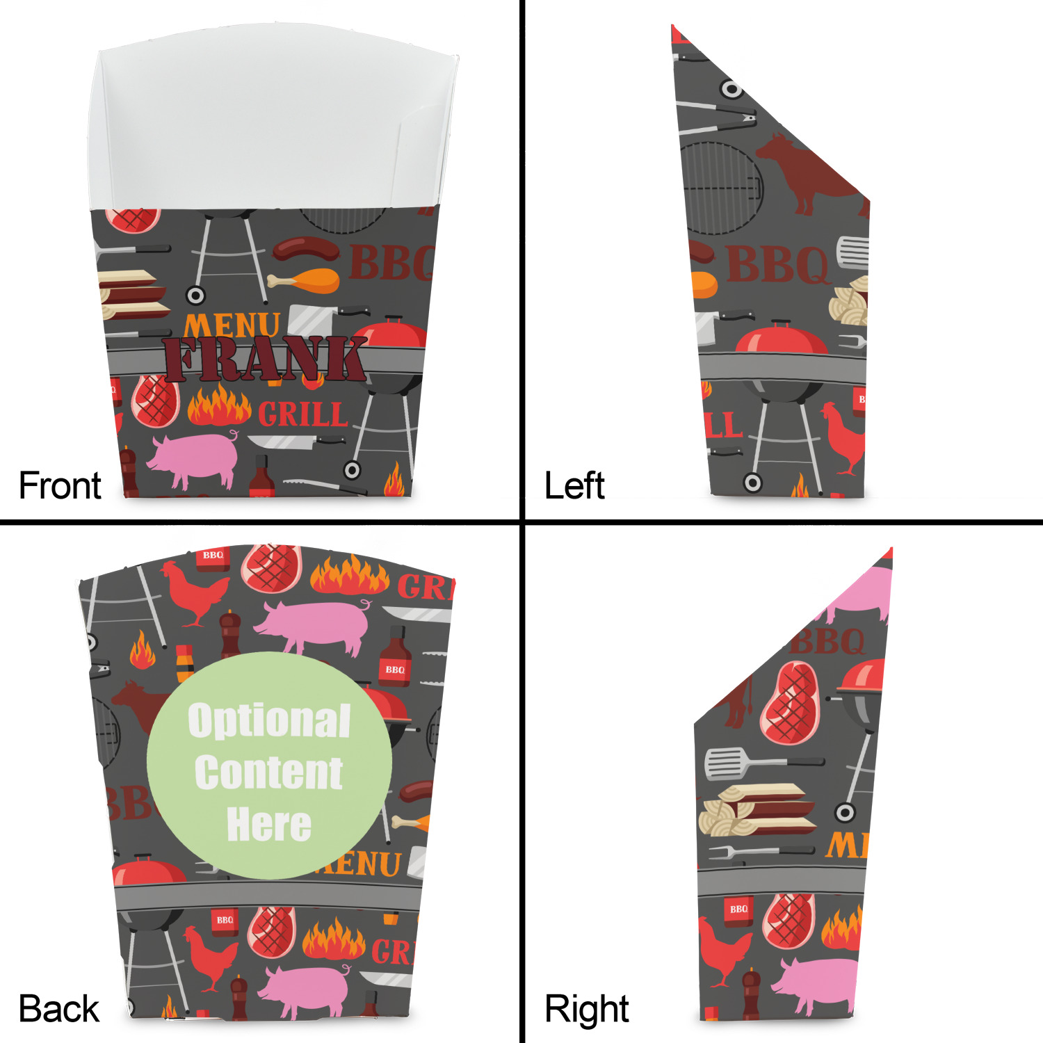 These favor boxes are printed in full color on quality cardstock - so coordinating the french fry favor boxes to match your event's themes or colors should be a breeze. You can upload your own design including artwork, logos or photos